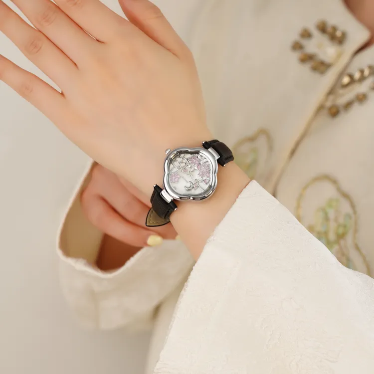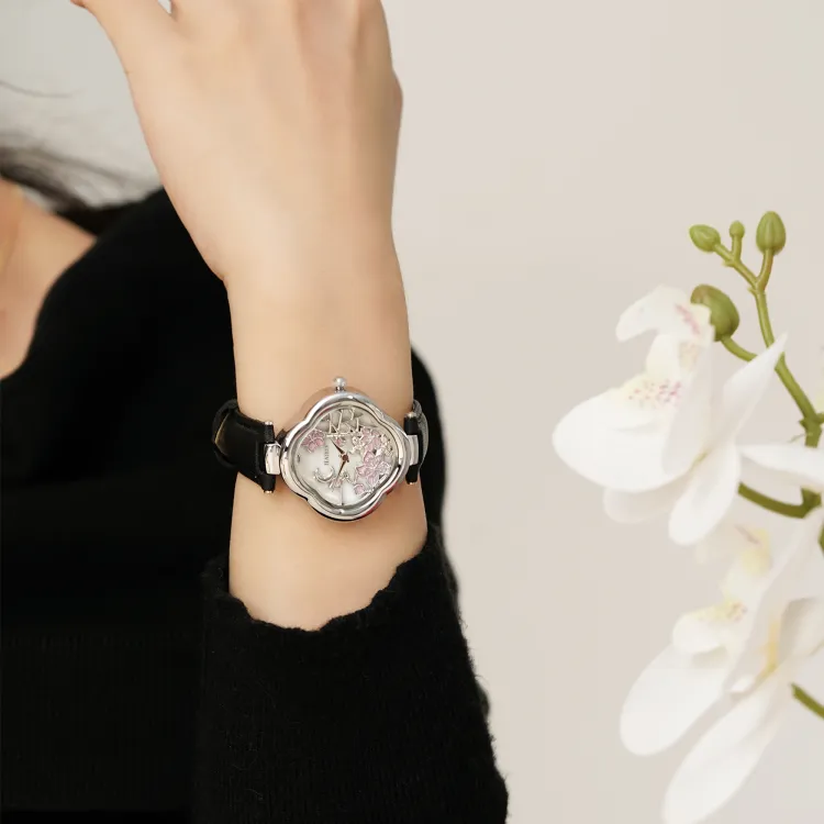 Черный ремешок с серебряным циферблатом в стиле пудра