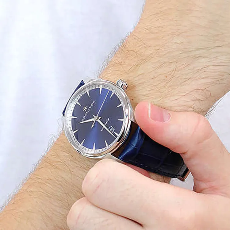 HAMILTON Автоматический Механический Часы Мужские 40 мм Синий Циферблат Корпус из Нержавеющей Стали Ремешок из Натуральной Кожи