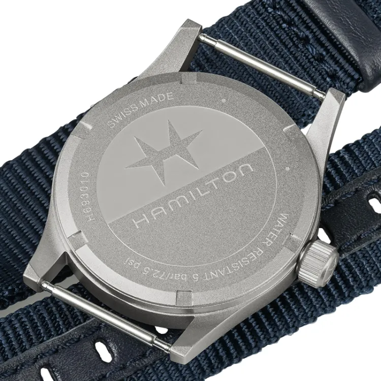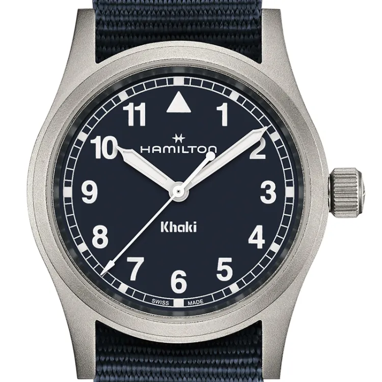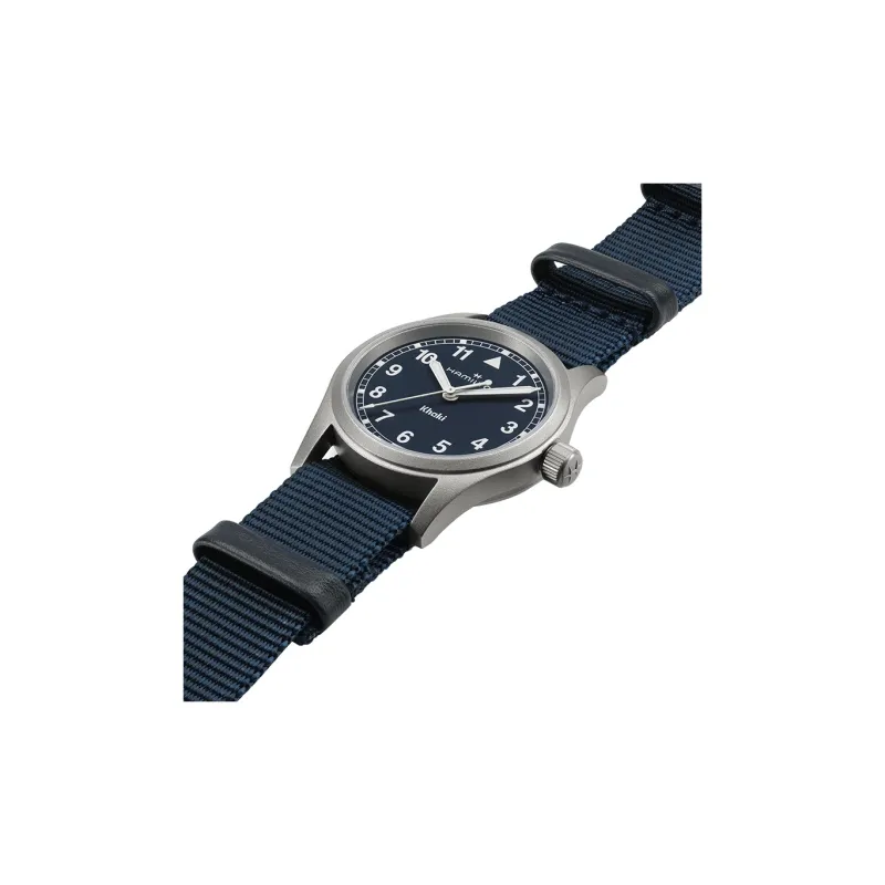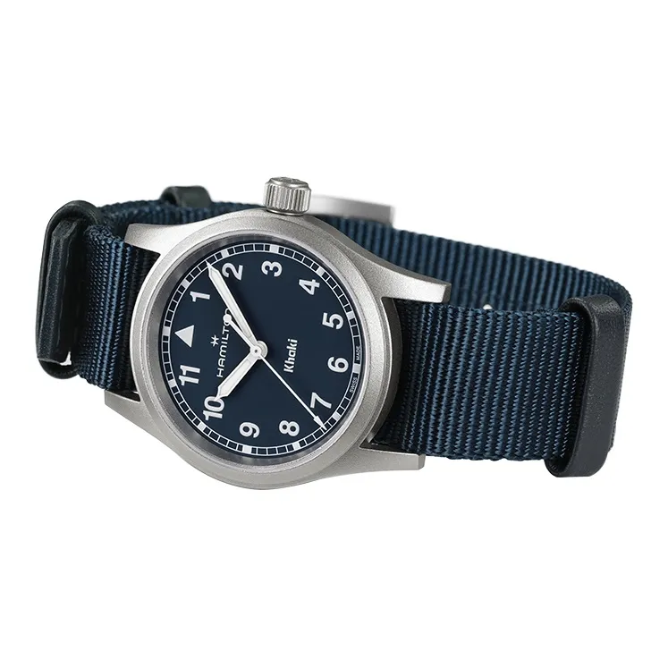 HAMILTON Khaki Field Series Кварцевый механизм Унисекс Часы 38 мм Синий циферблат Нержавеющая сталь Корпус Холст Ткань NATO Ремешок