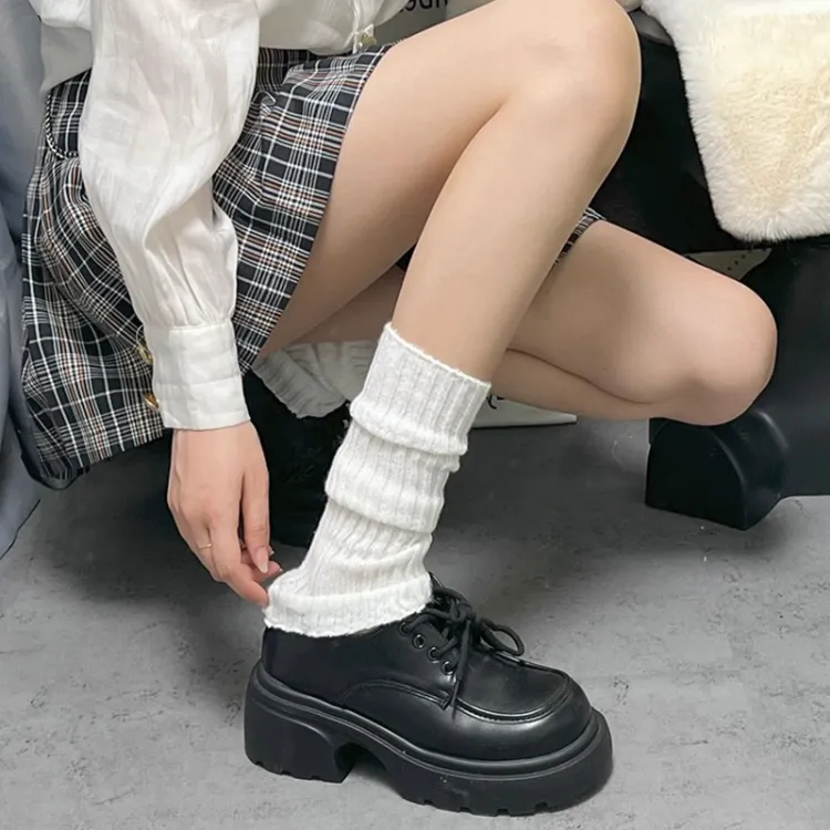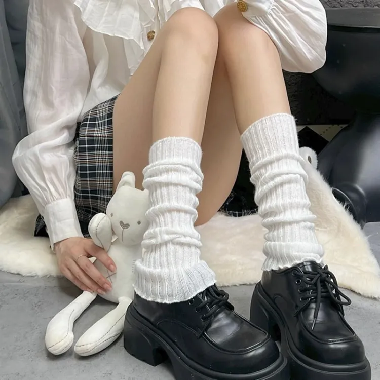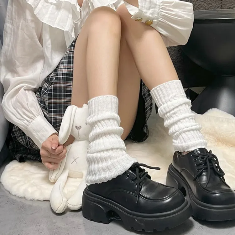 Han Lover Мода Lolita Колено Высокие Осенние и Зимние Гетры Женские Черный Белый Однотонный JK Голень Носки Чехлы 3 Упаковки