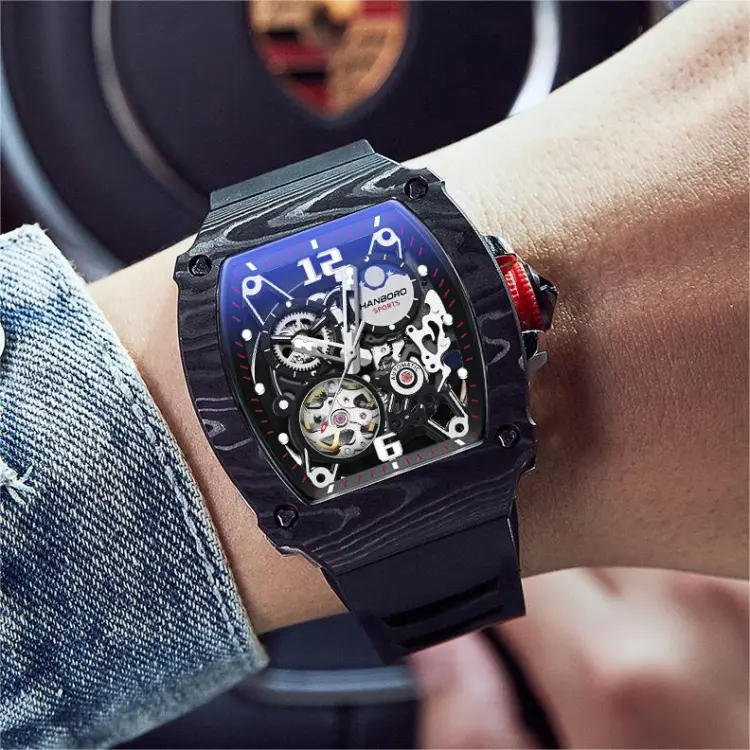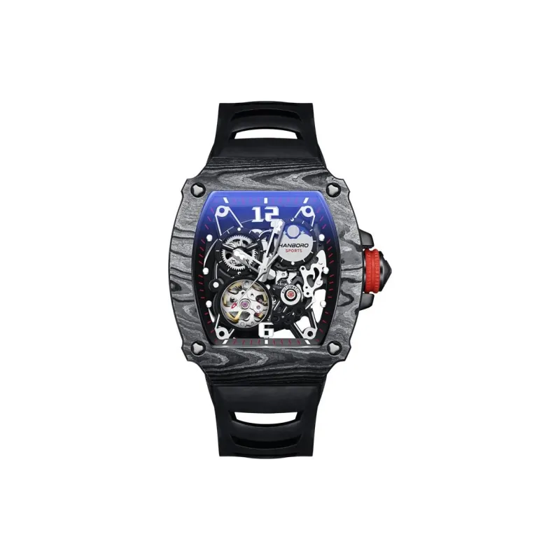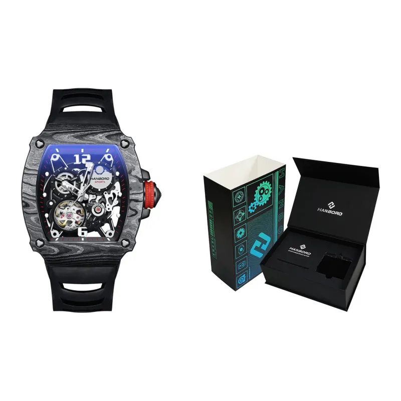 HANBORO Автоматический Механический Механизм Часы Мужские Черный Циферблат HBR976 HH