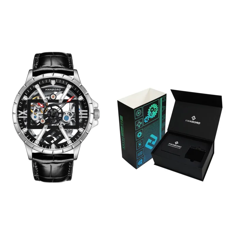 HANBORO Автоматический механический механизм Часы Мужские Часы Черепный циферблат HBR910 BH