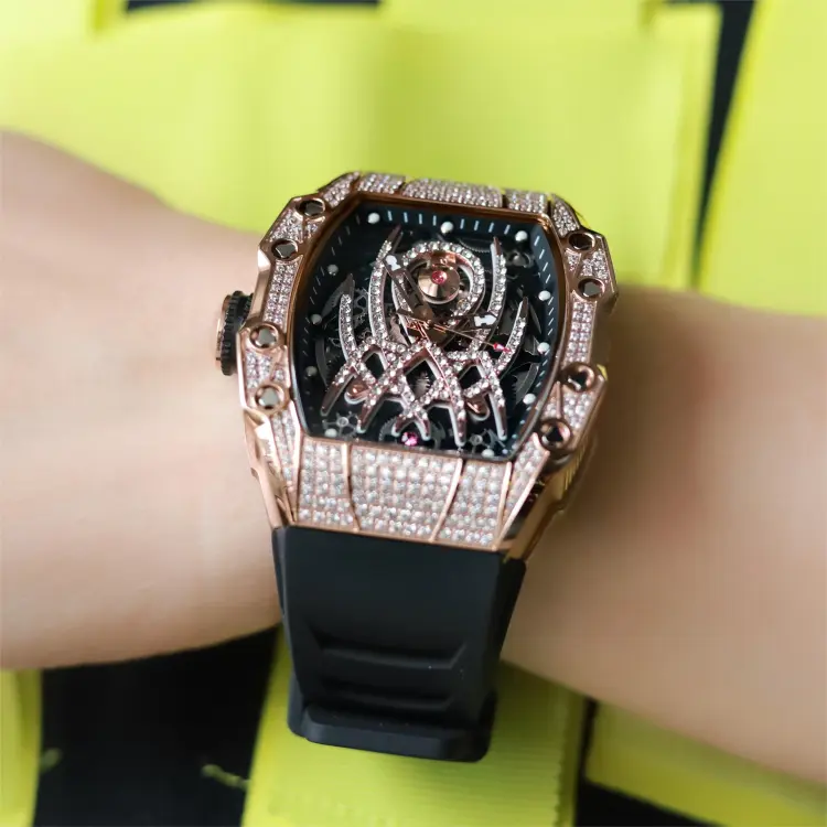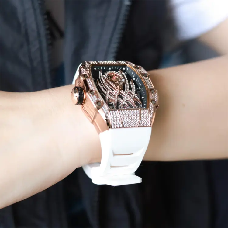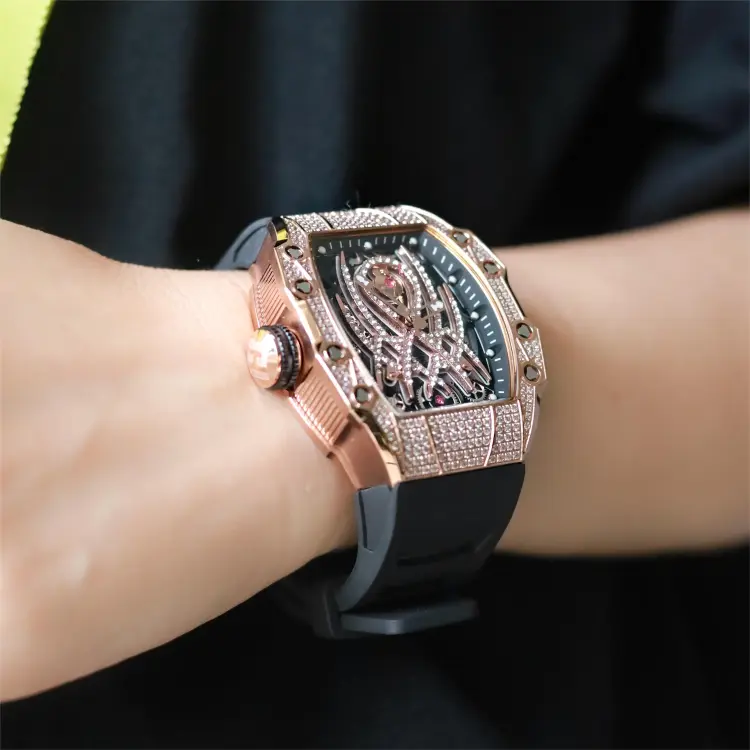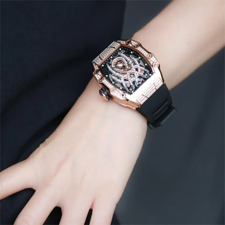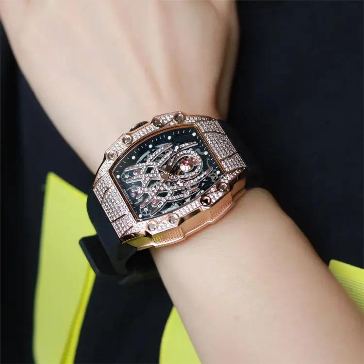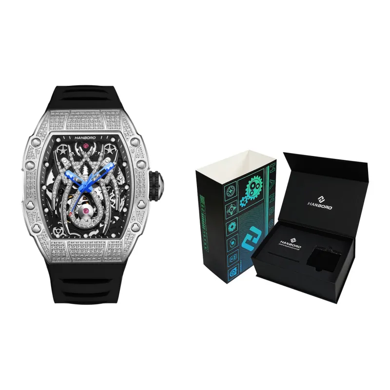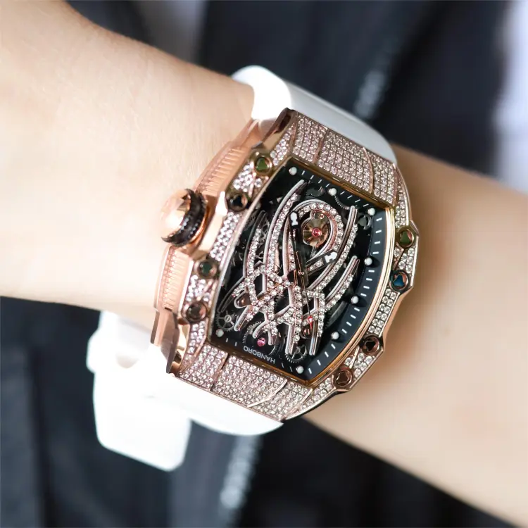 HANBORO Автоматический Механический Механизм Часы Мужские Золотистый Циферблат
