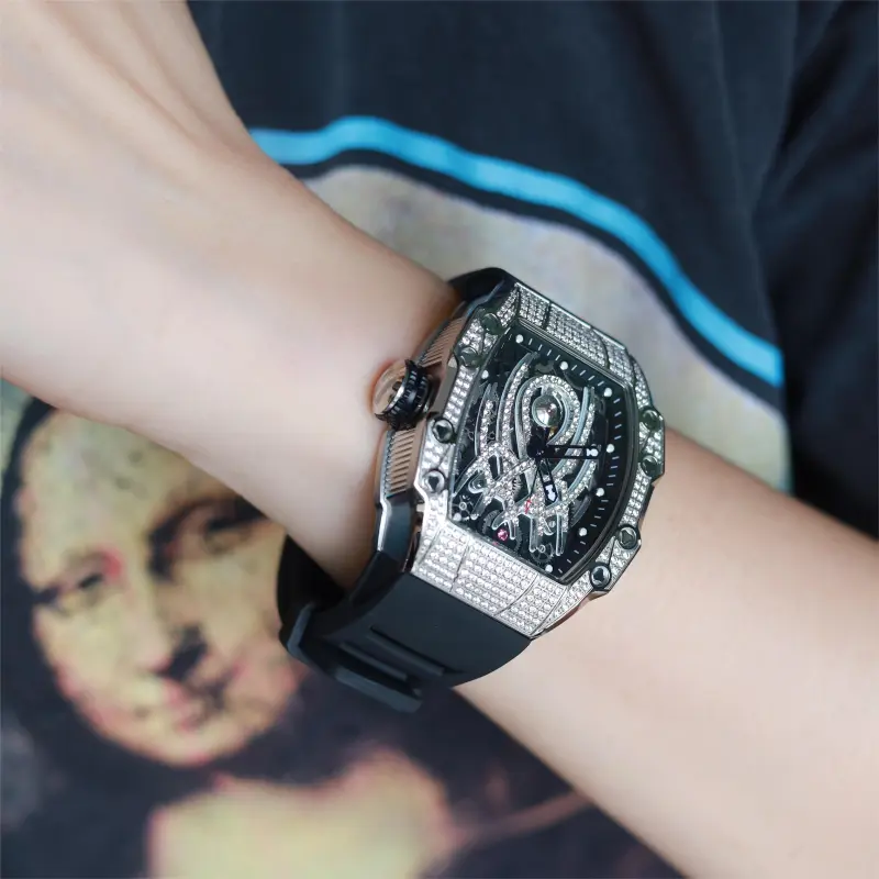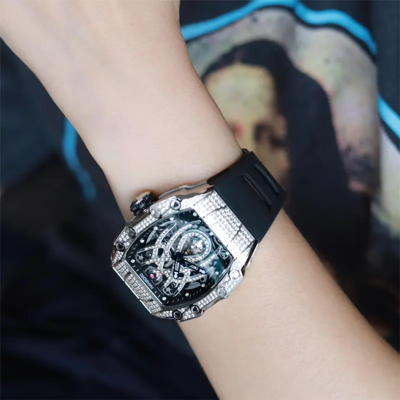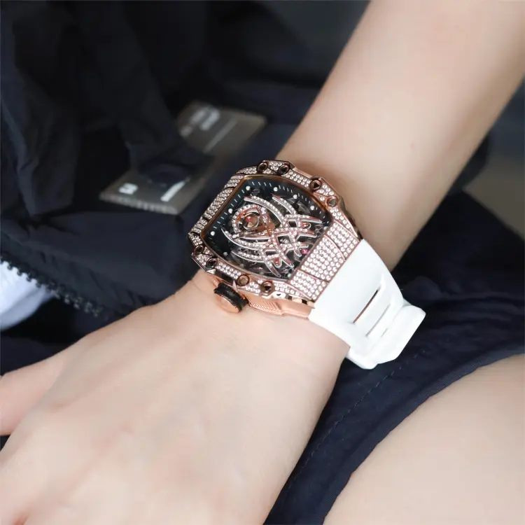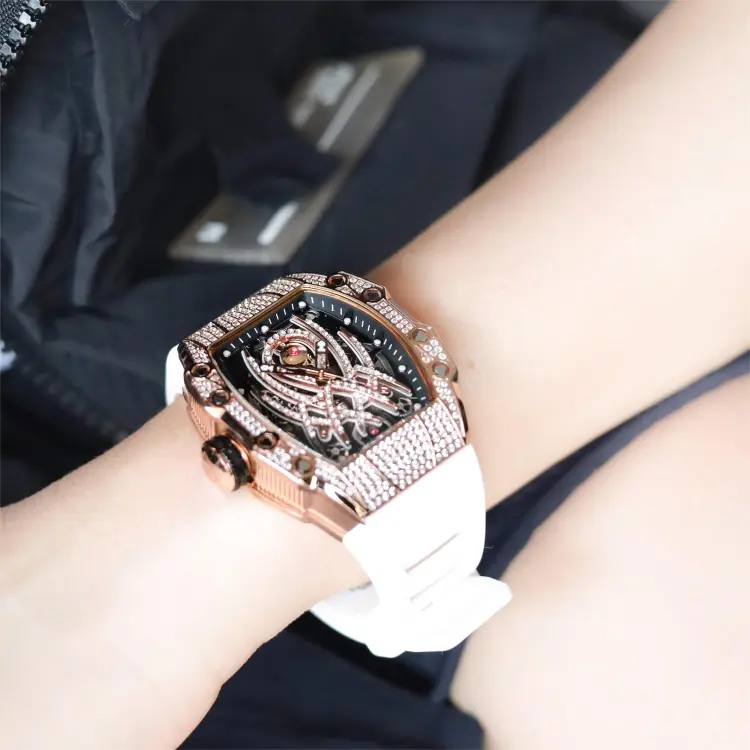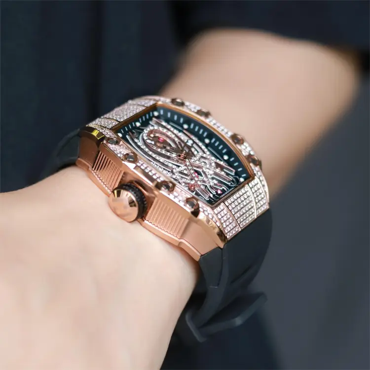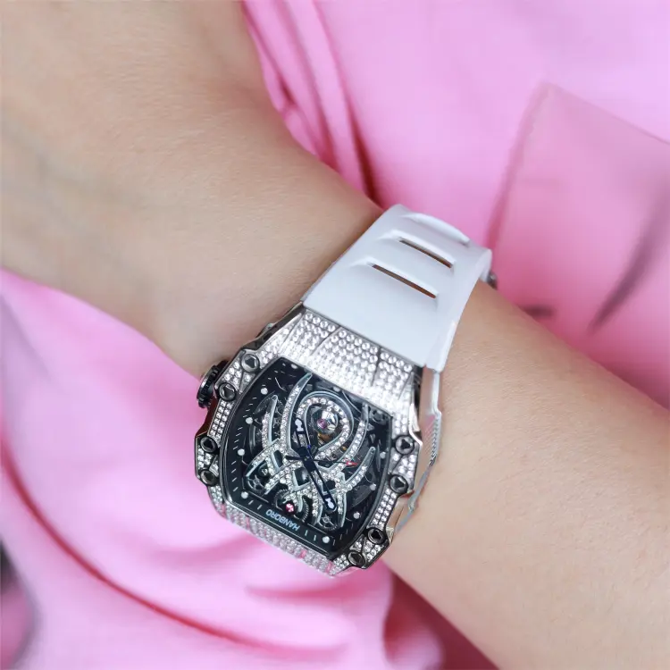 HANBORO Автоматический Механический Механизм Часы Мужские Золотистый Циферблат