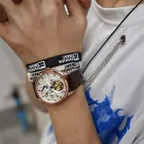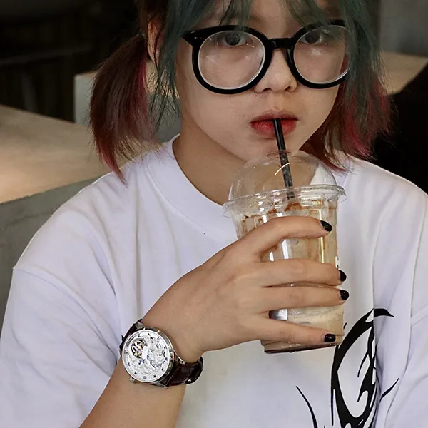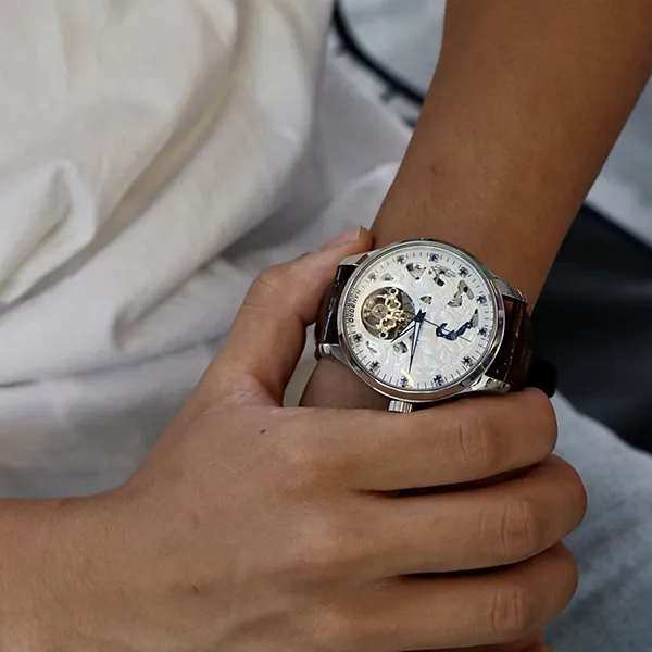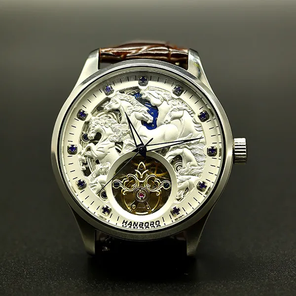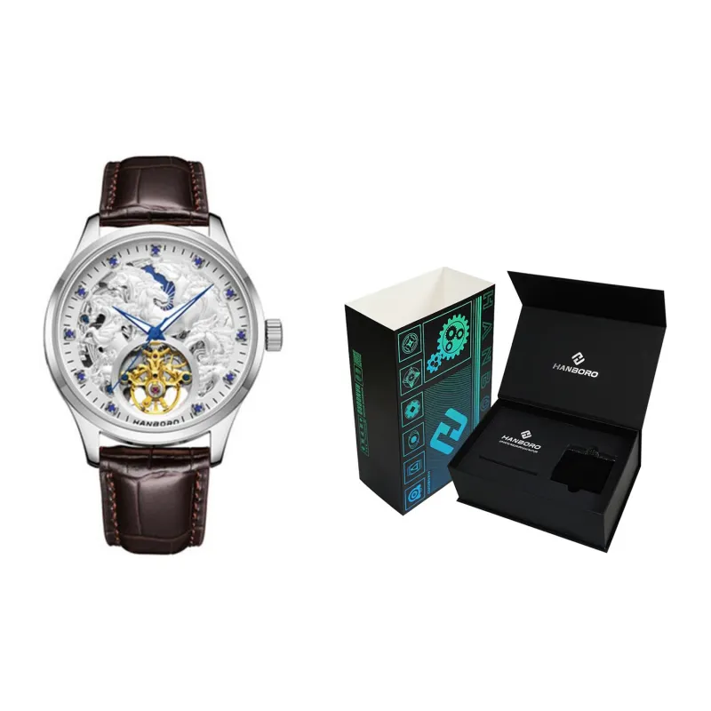 HANBORO Classic Collection Автоматический Механический Механизм Часы из Натуральной Кожи с Ремешком Мужские Часы