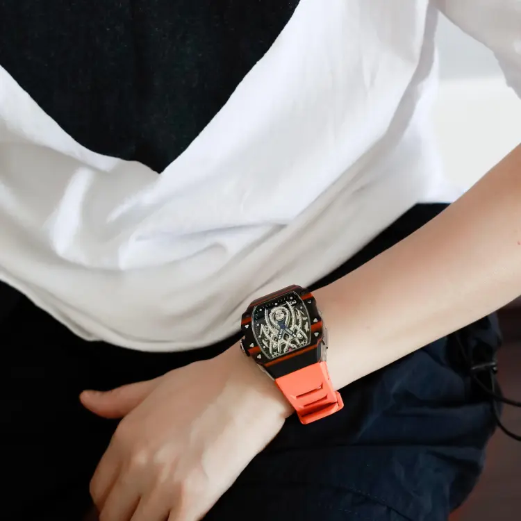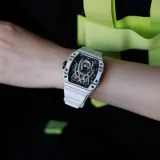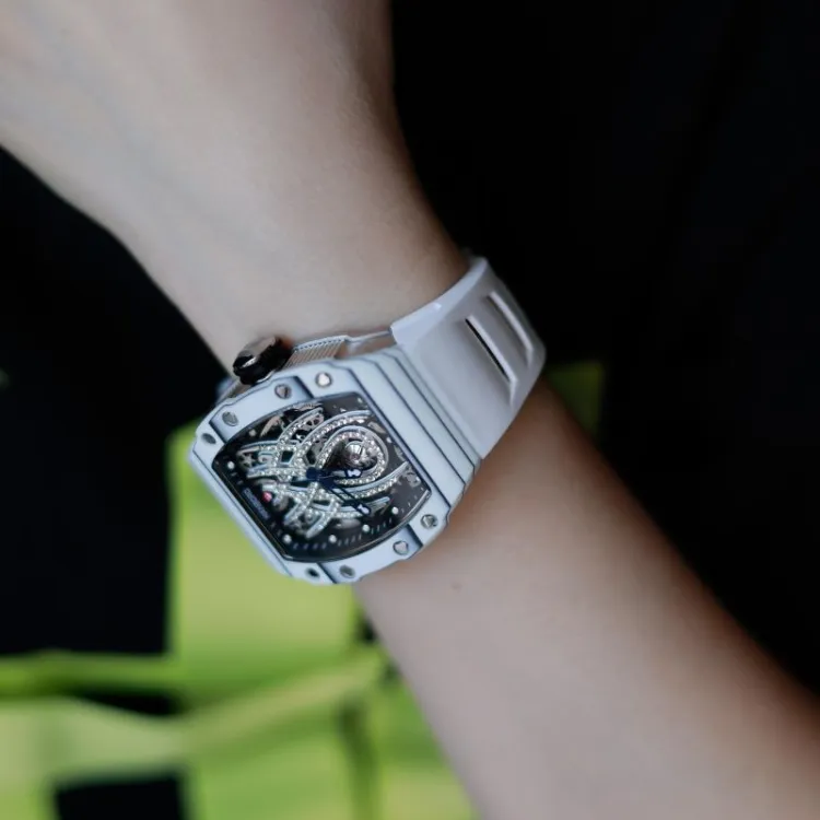 HANBORO Механический механизм Резиновый ремешок Часы Мужские Белый циферблат HBR922,3