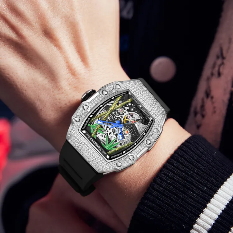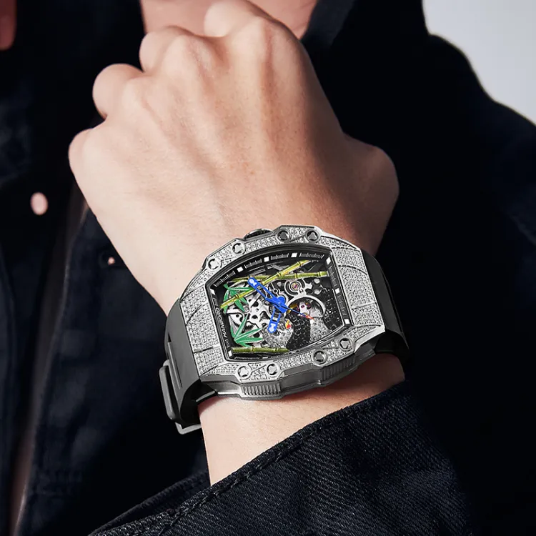 HANBORO Автоматические механические мужские часы 50 мм * 24 мм * 20 мм с открытым механизмом