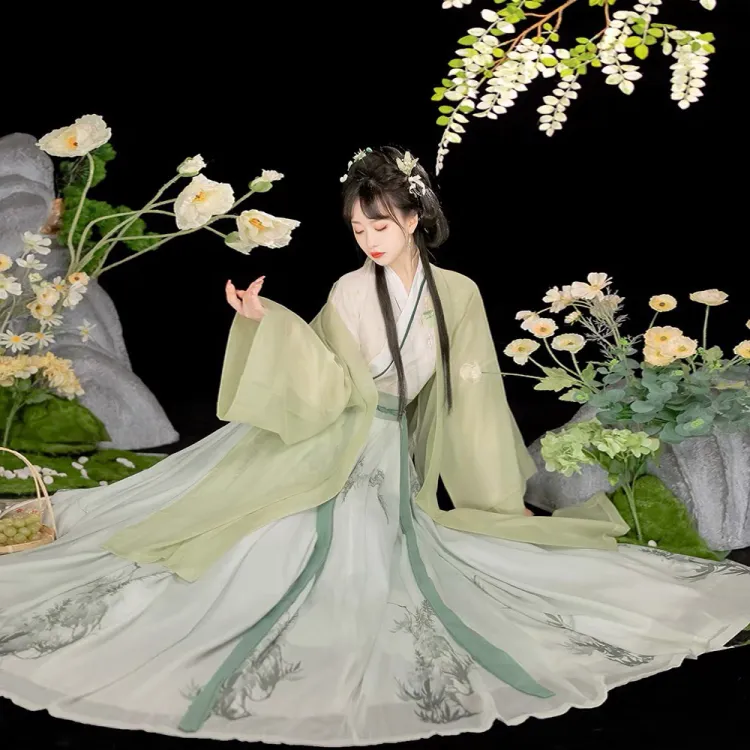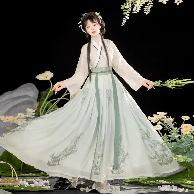 Женское платье Ханьфу из бамбукового зеленого