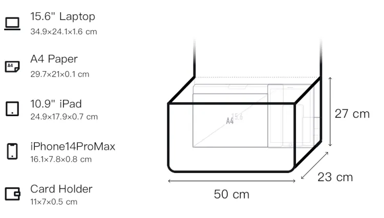 L50*W23*H27см Карман для разделения мокрого и сухого, длина (размер в длину) 22,5см, ширина корпуса 9см, длина корпуса 17см