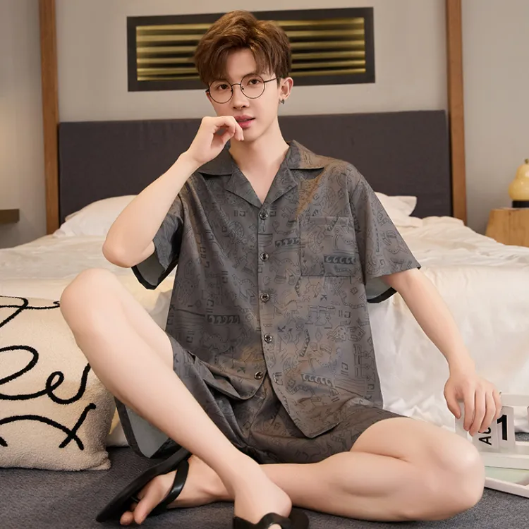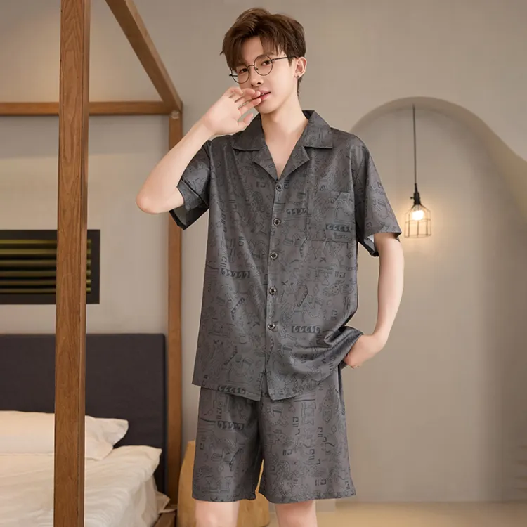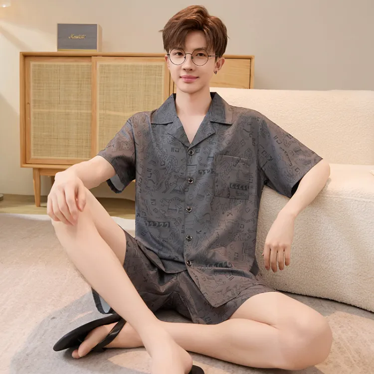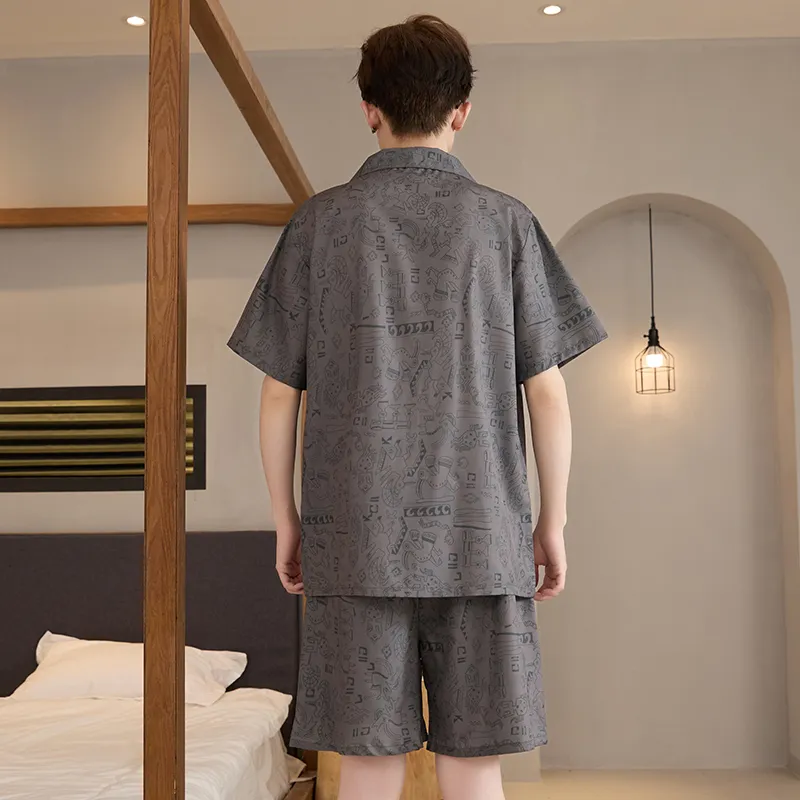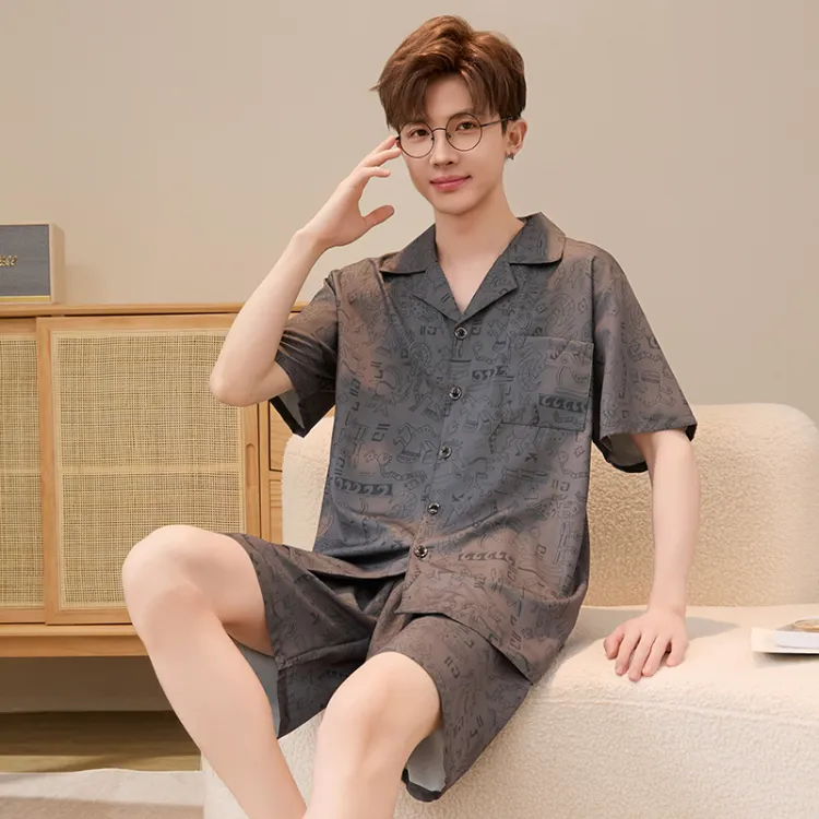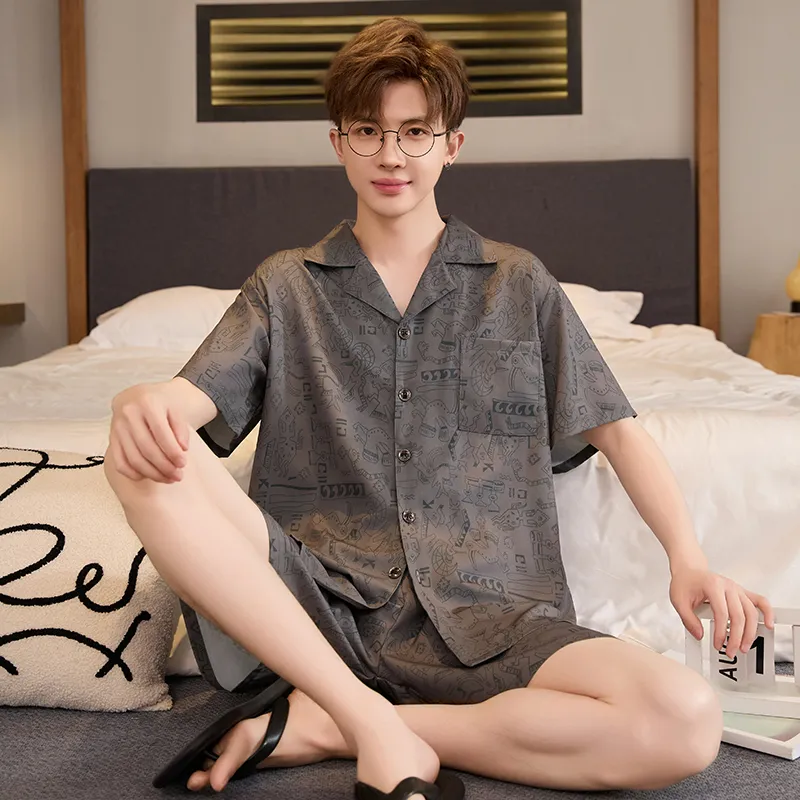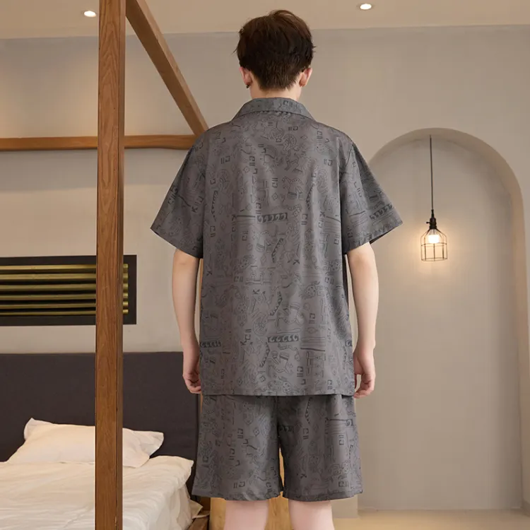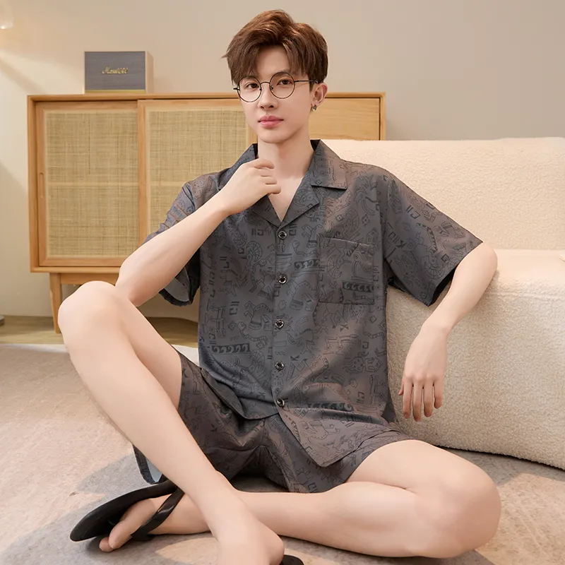 HANQIANNUO 2230# Мультяшные строительные блоки Мужской пижамный комплект