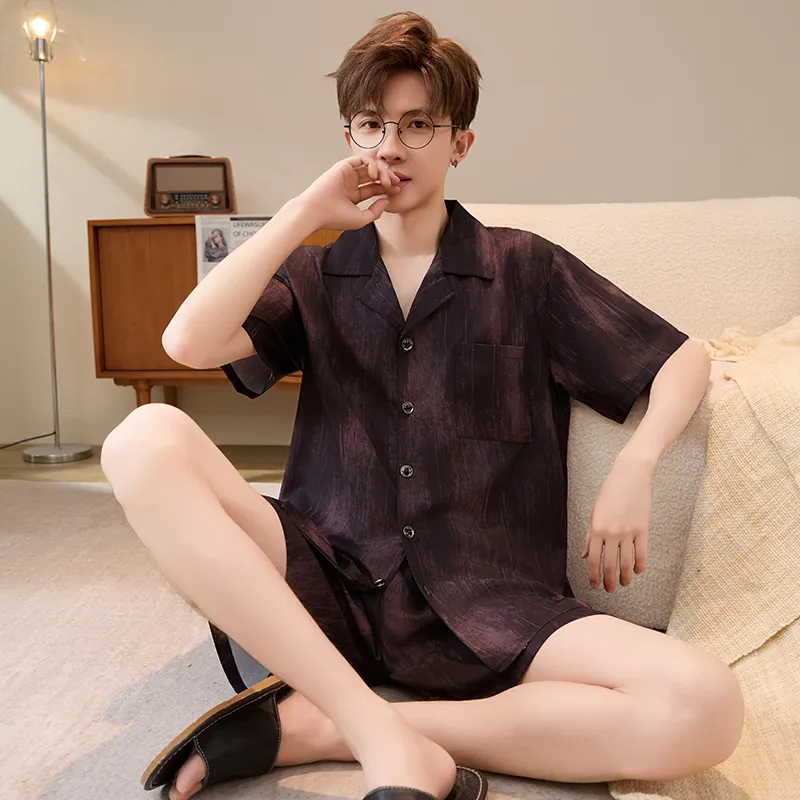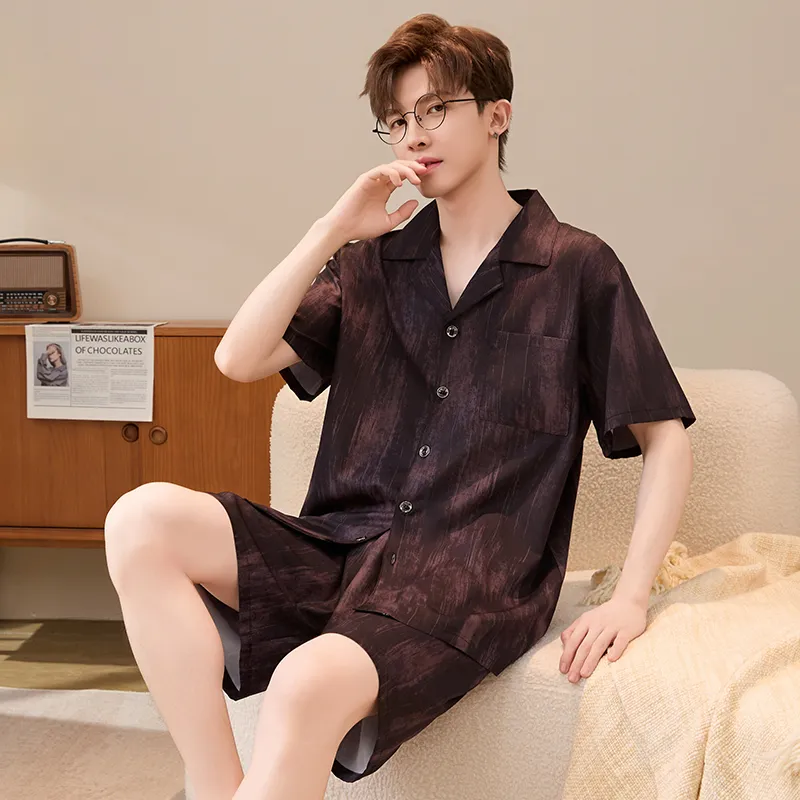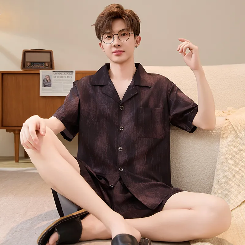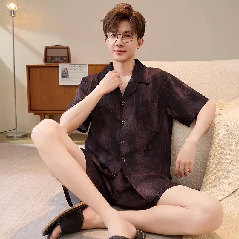 HANQIANNUO 2236# Красный Сандаловое дерево Древесное зерно Мужской Пижамный комплект