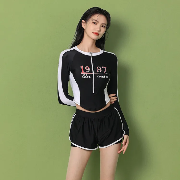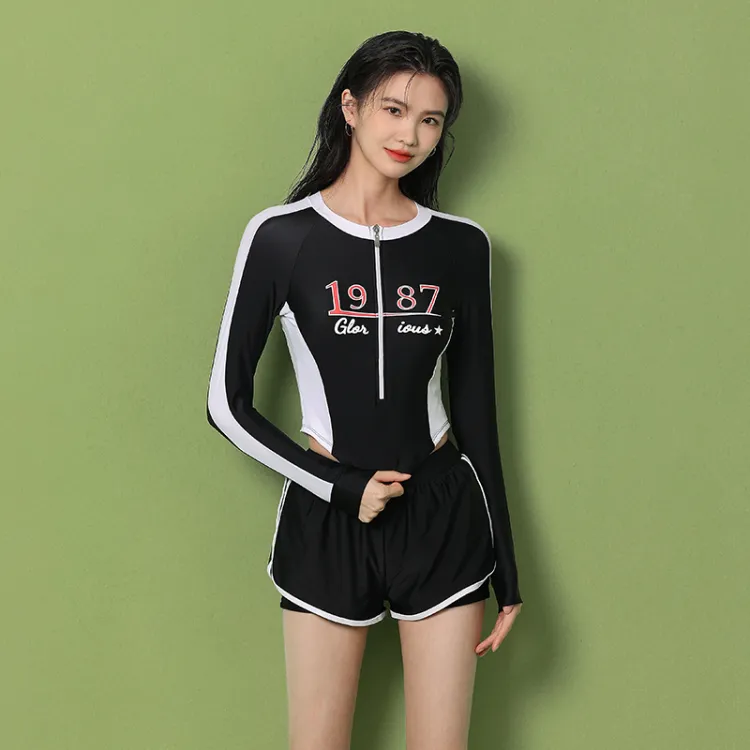 Цвет:Комплект (Черный купальник + Черные плавательные шорты)