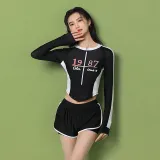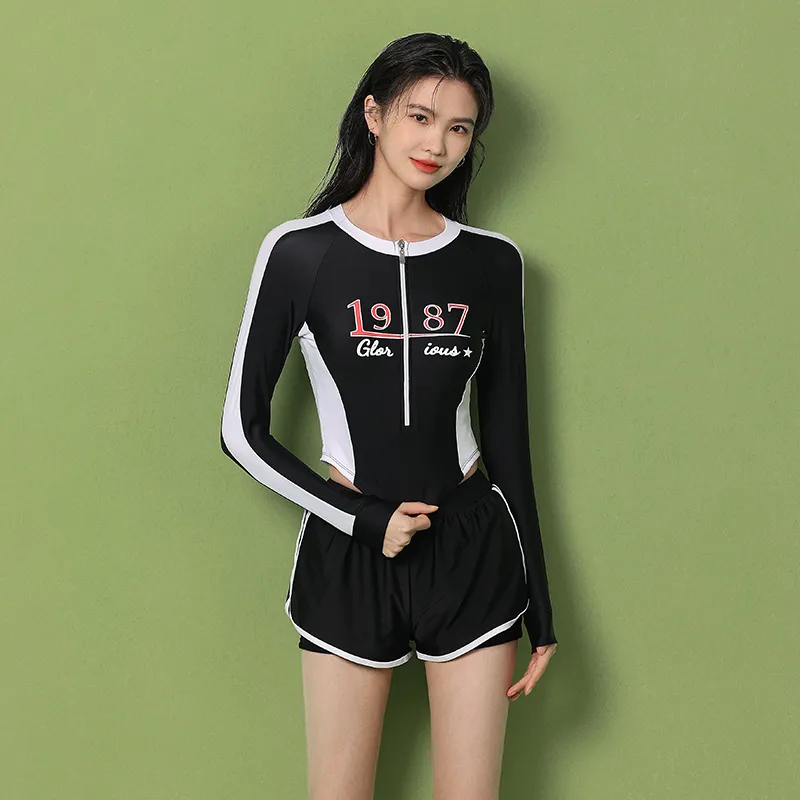 HAOZHILANG Комплект Черный Купальник + Черные Плавательные Шорты Женские Двухкомпонентный Купальник