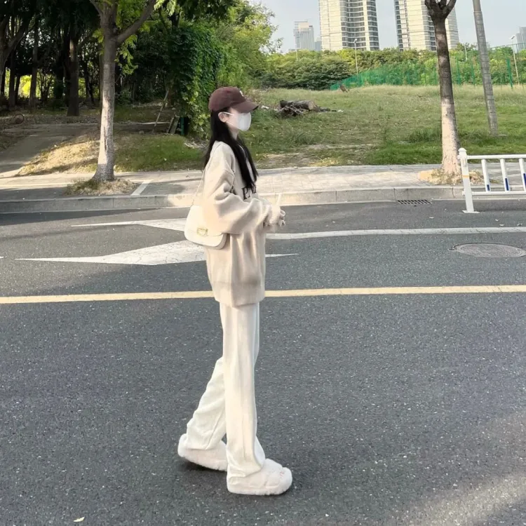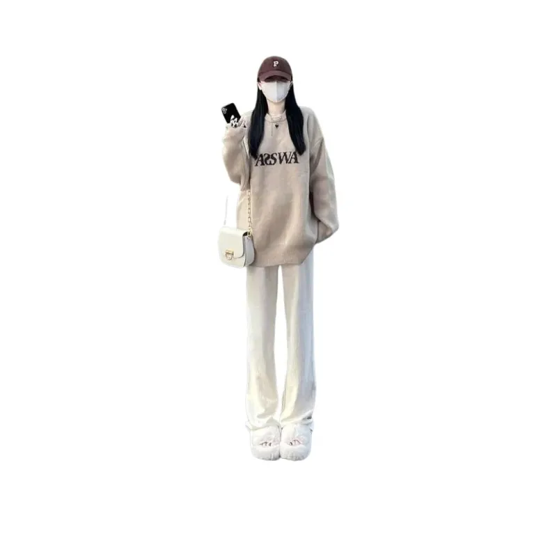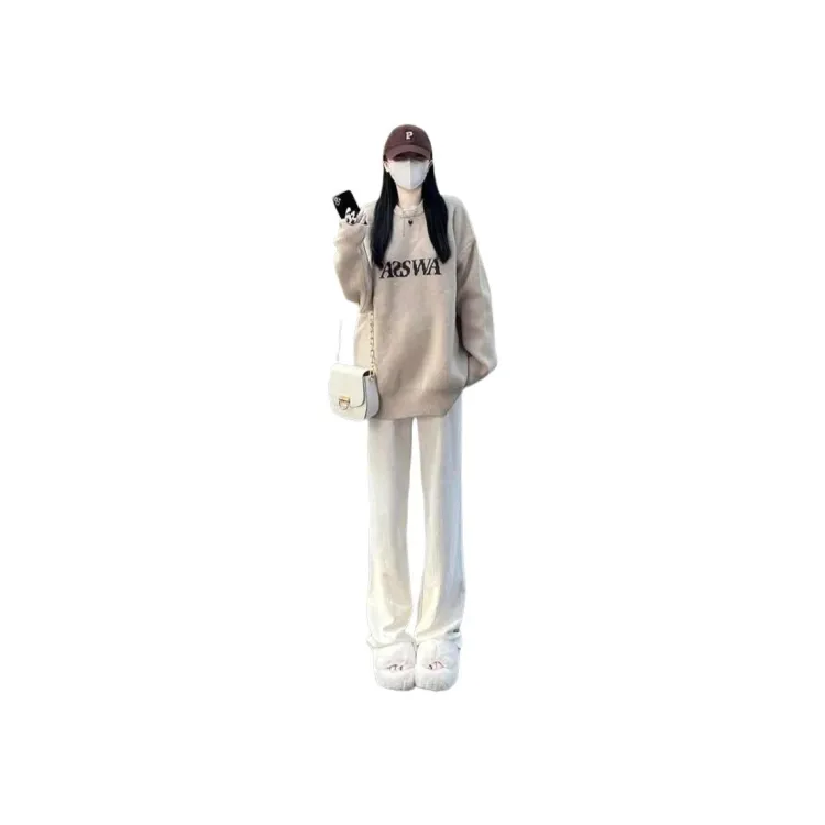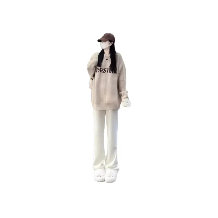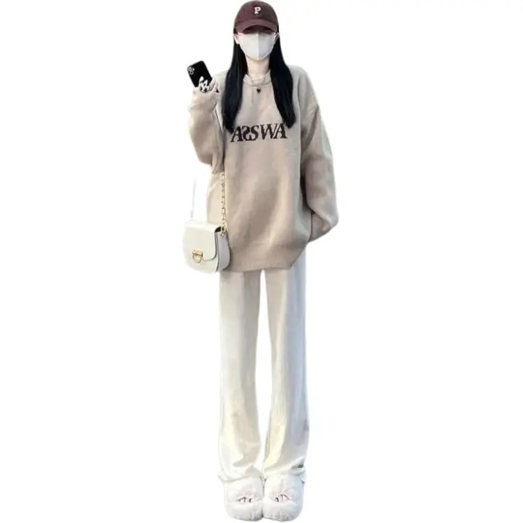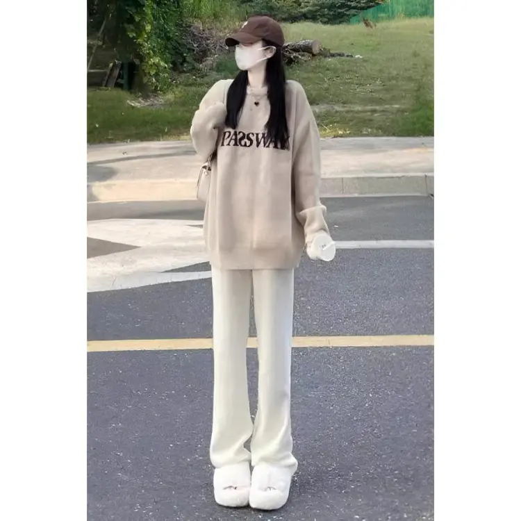 Комплект:[Двухкомпонентный комплект] Абрикосовый свитер + широкие штаны