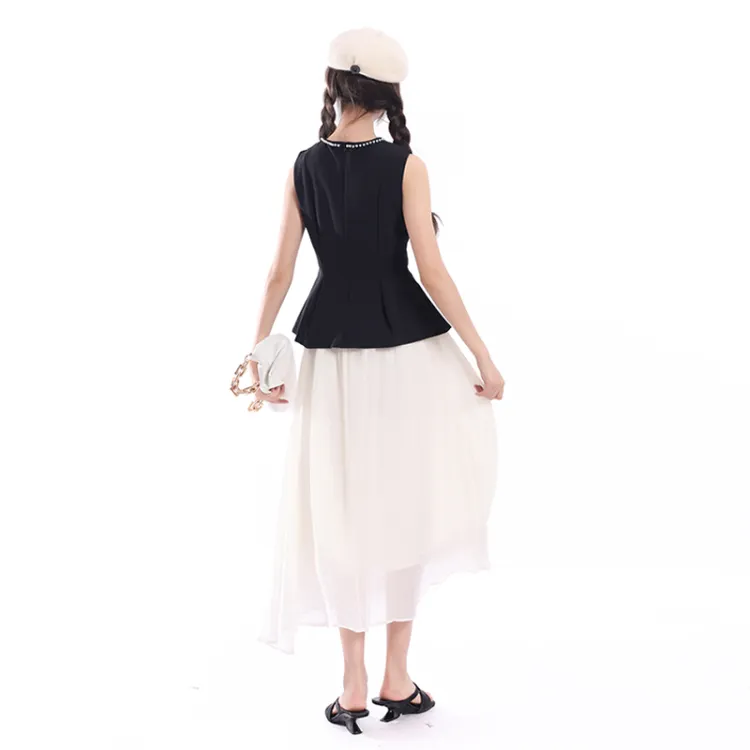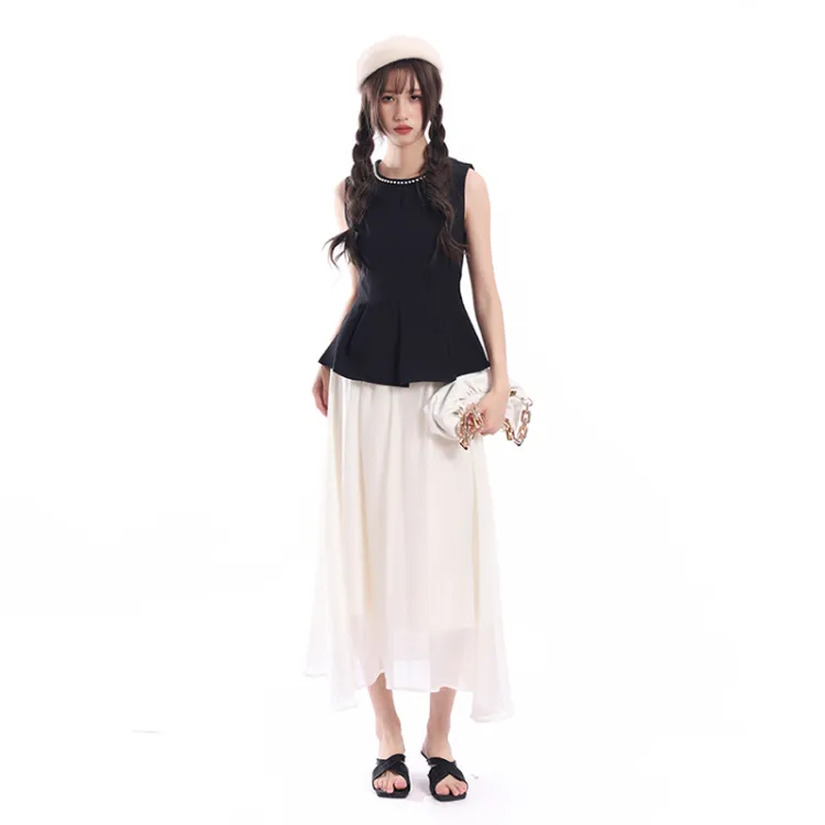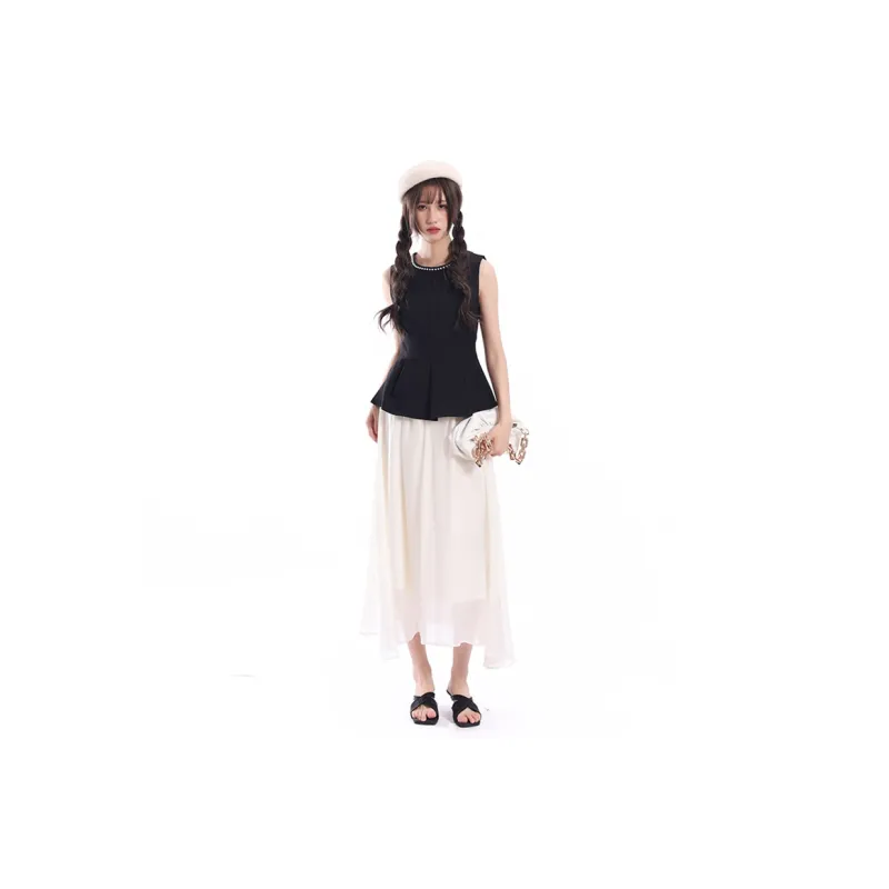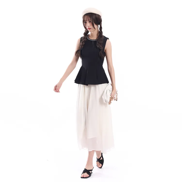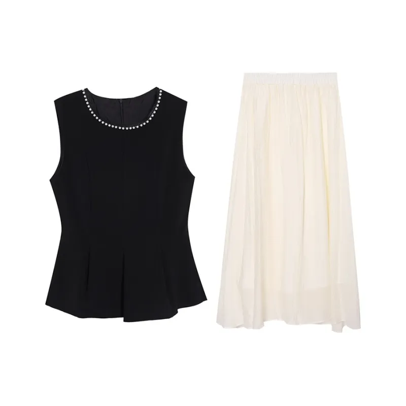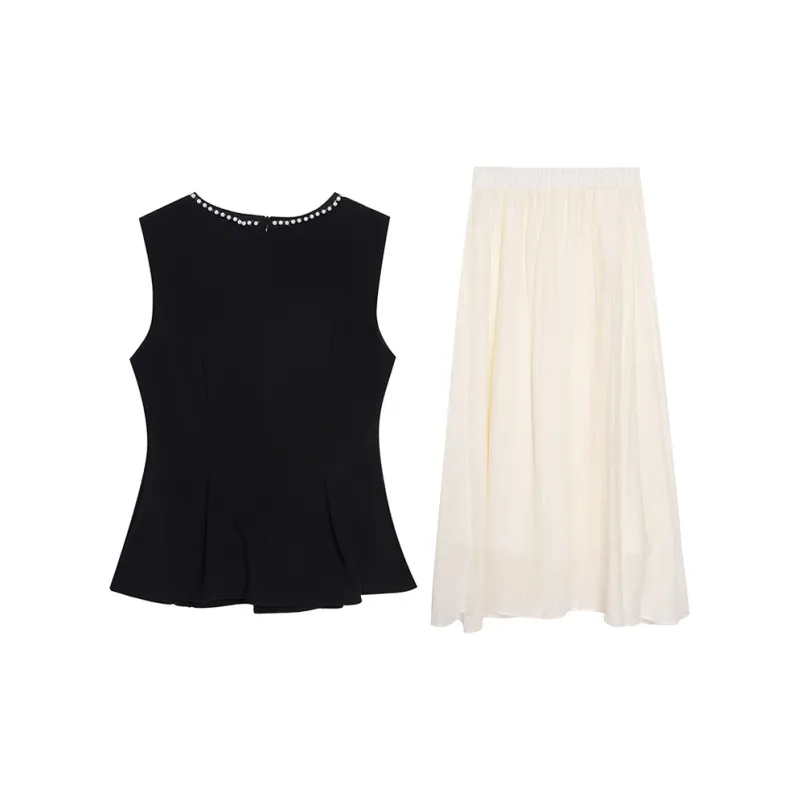 Комплект:Чёрный топ + Абрикосовая юбка