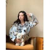 HAPG Синий с Белым Lettering Женские Пижамные комплекты