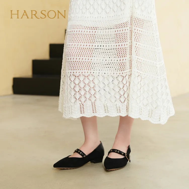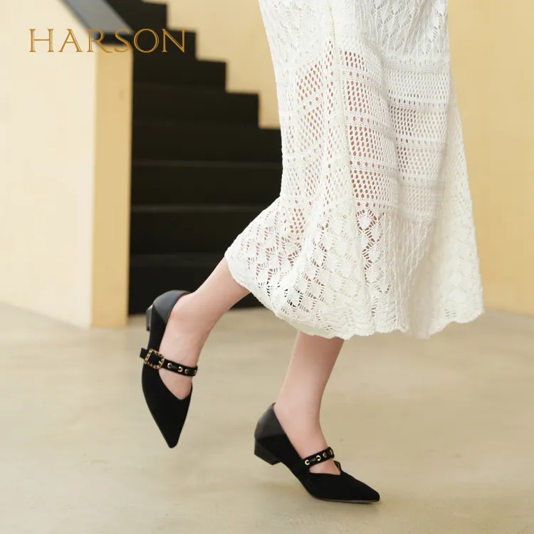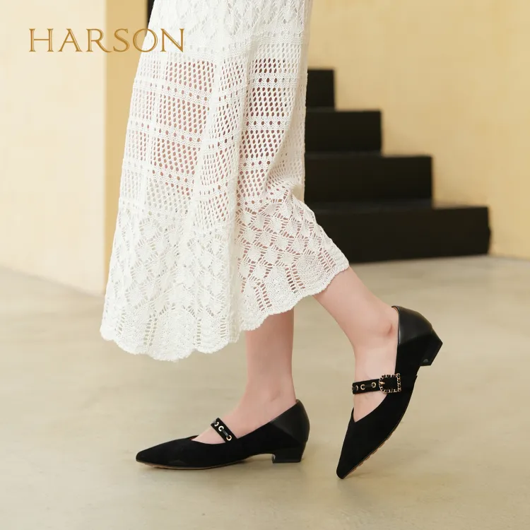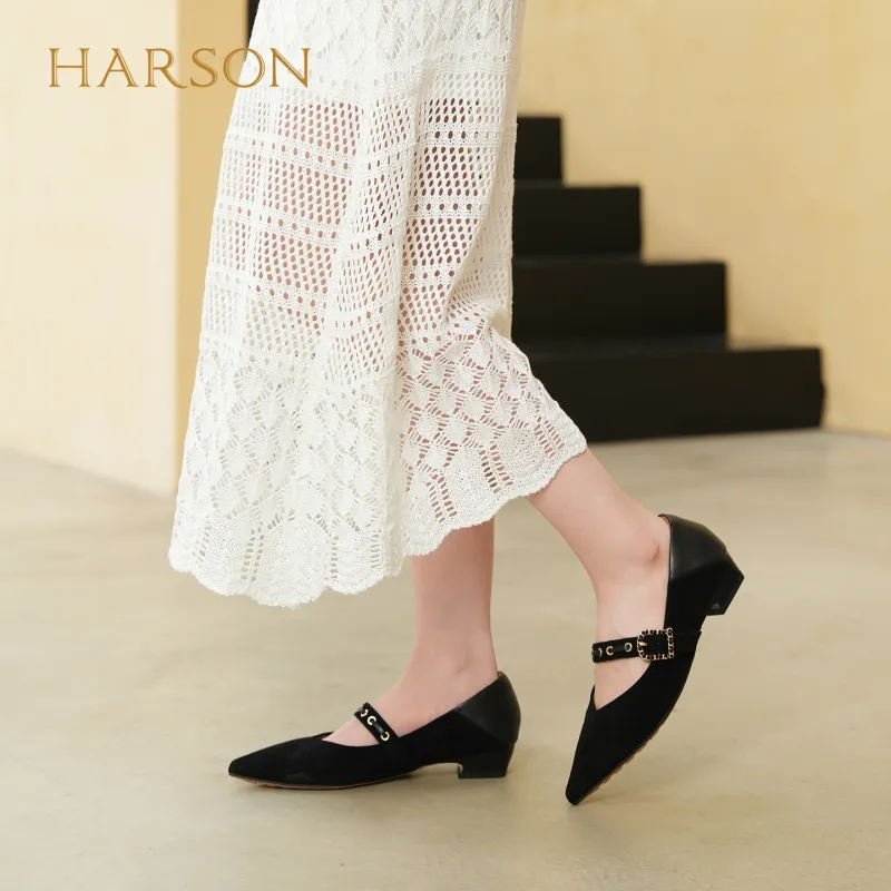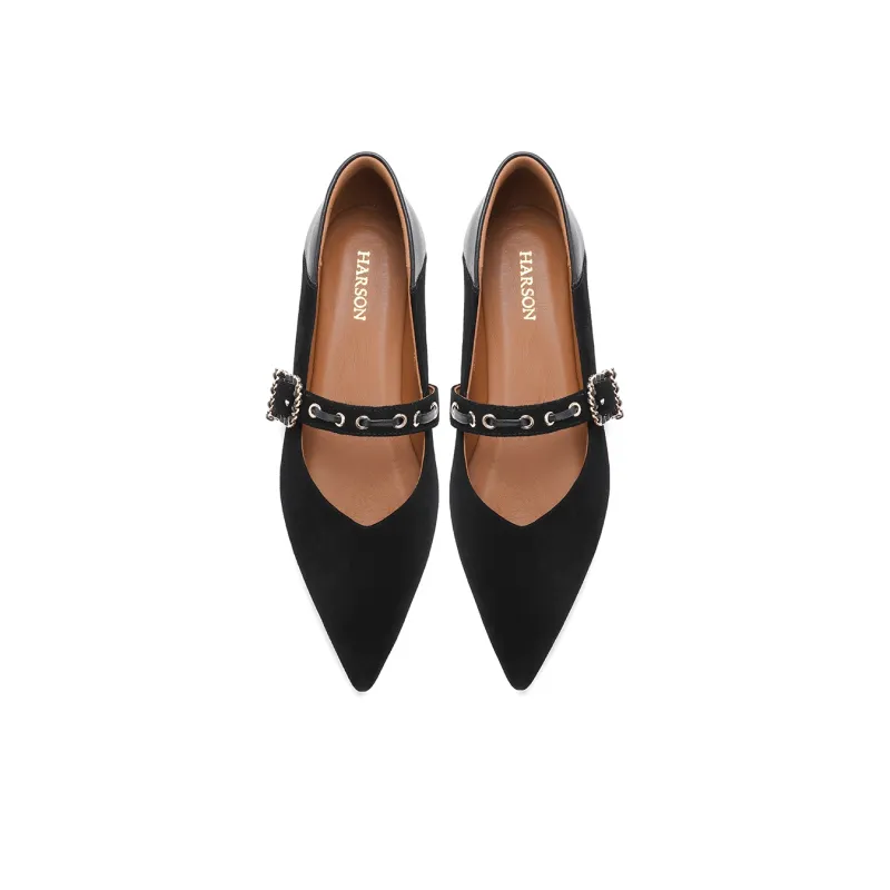 HARSON Mary Jane Shoes Black Sheepskin Women's