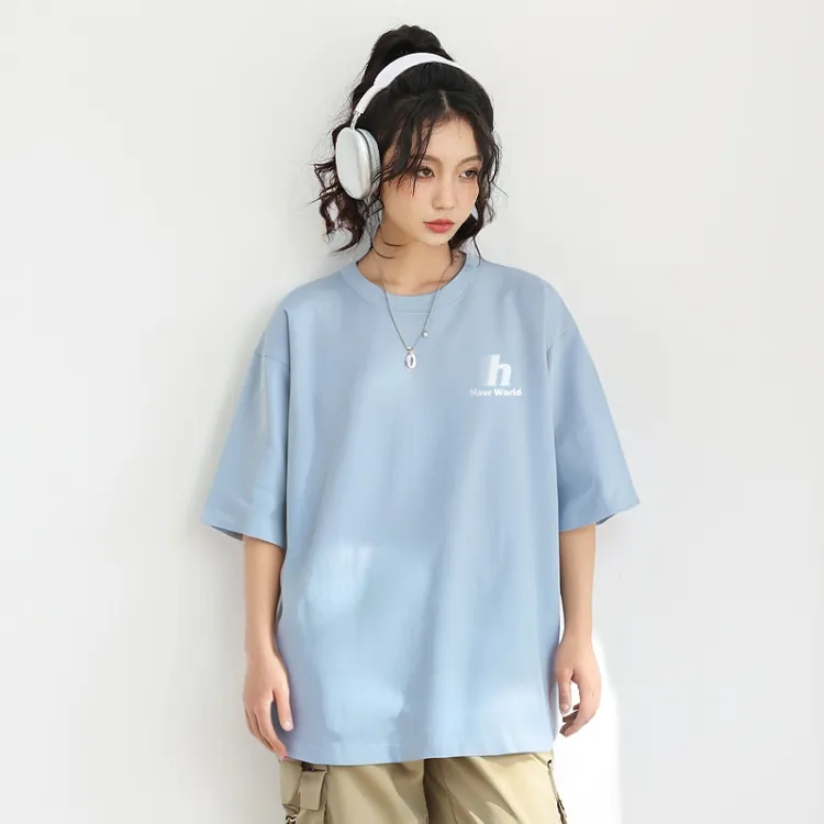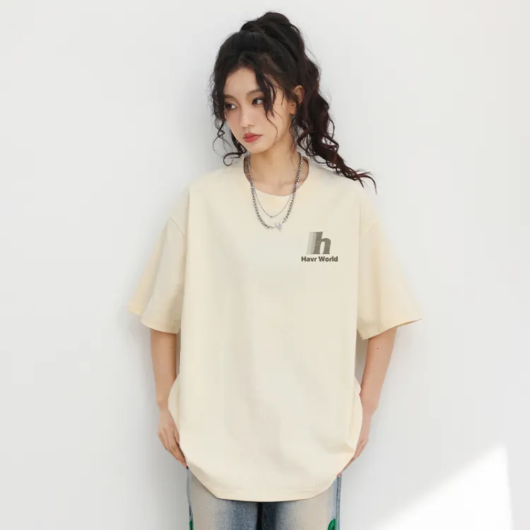 HAVR Свободный крой Дышащий Тонкий Короткий рукав T-рубашки Унисекс