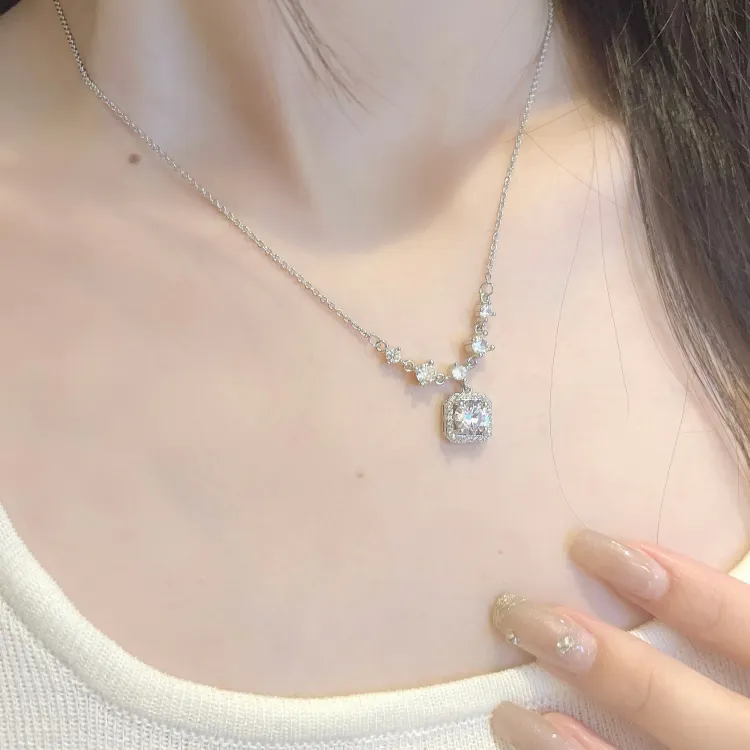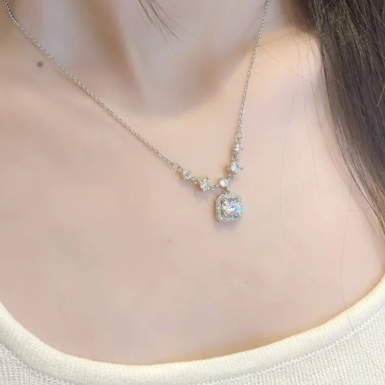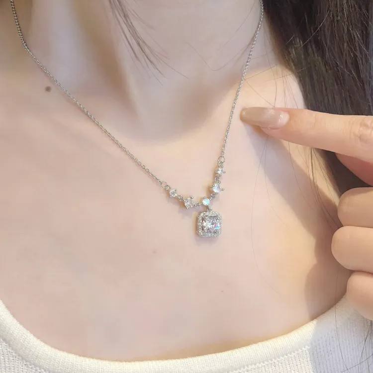 Стиль:Ожерелье с ромбовидным кулоном "Принцесса", серебряного цвета