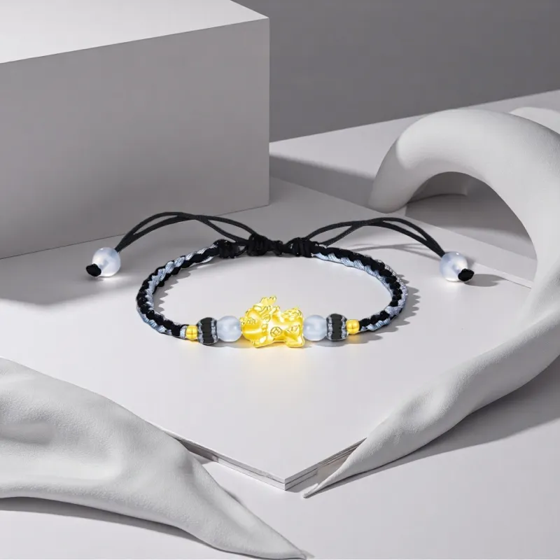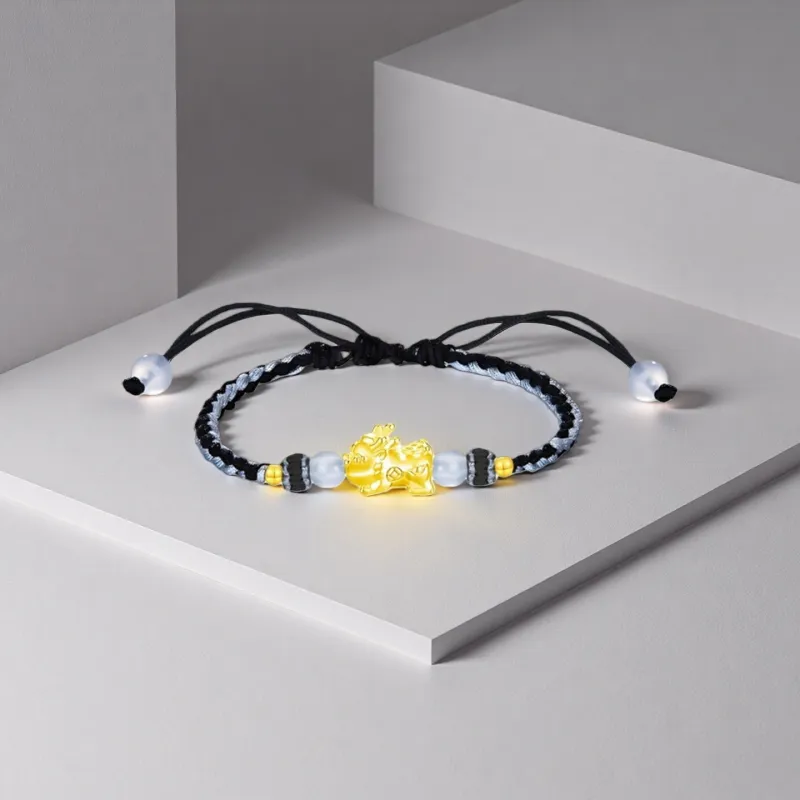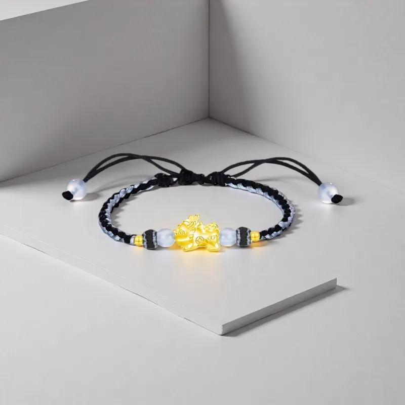 Стиль:Черный браслет с шнурком с китайскими символами удачи и благословения в виде животных