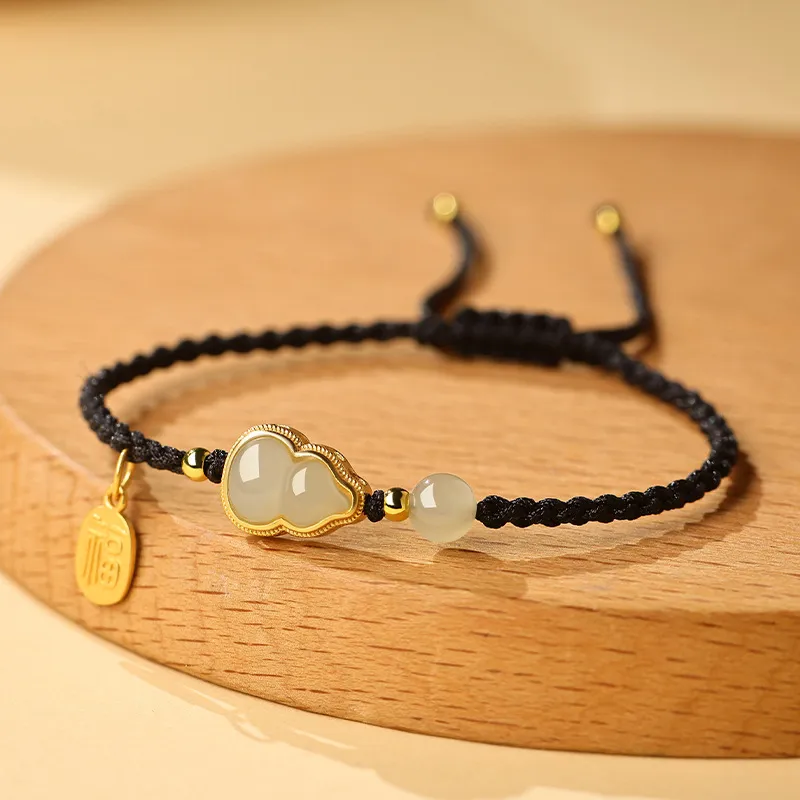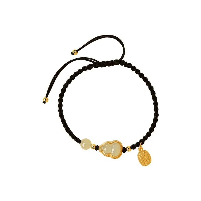Стиль:Подвеска с иероглифом «Фу» Нефритовая Горлянка Черный Браслет-шнурок