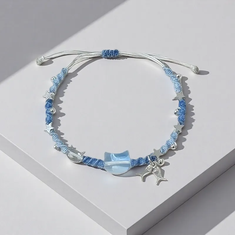 Стиль:Морской синий, котенок, голова, браслет-шнурок