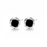 Серьги-гвоздики из серебра с черной лентой Мёбиуса
