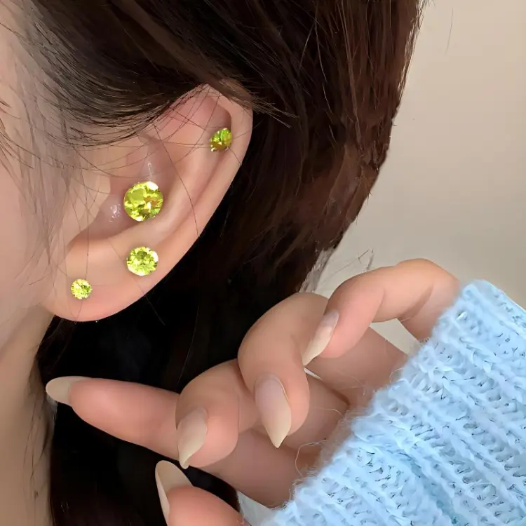 Стиль:Серьги-гвоздики Kikyō Зеленые Сверкающие с Жемчугом (6 мм Одиночные)
