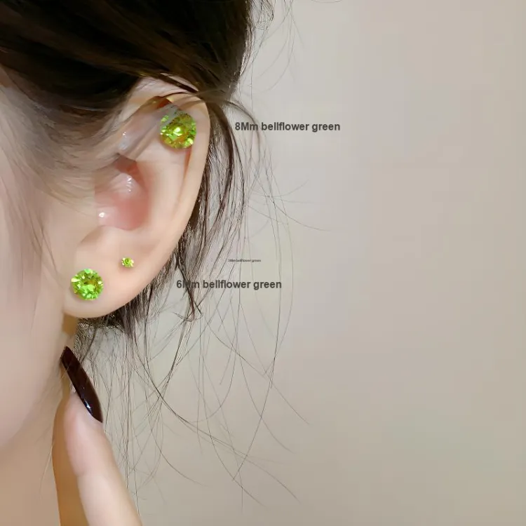 Кикё Зеленые Сверкающие Бусины Серьги-гвоздики (6 мм, 1 пара)