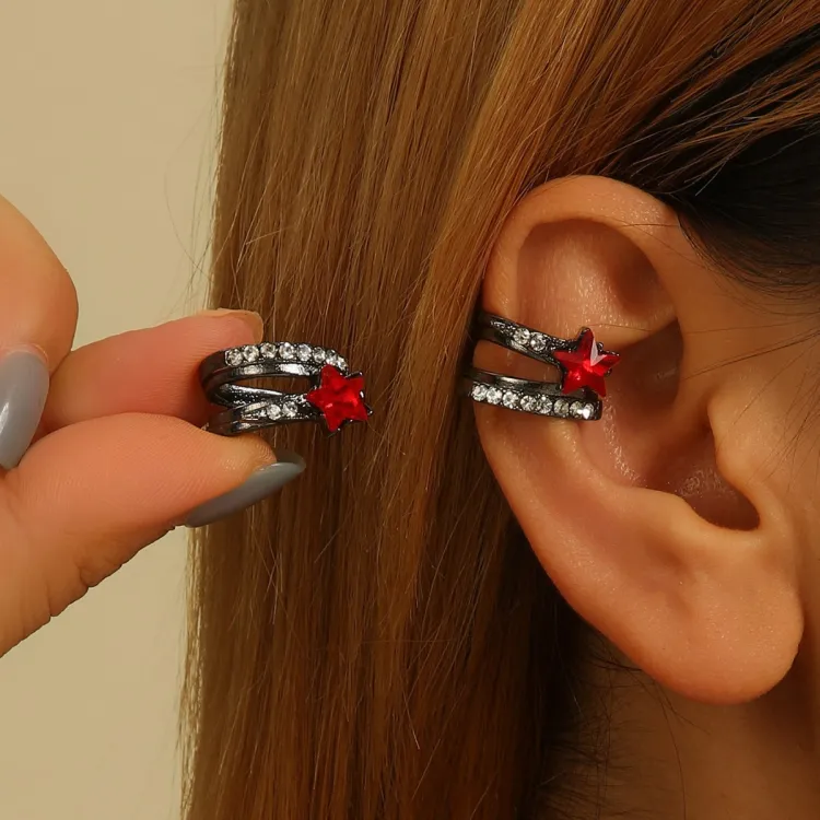 Серьги-клипсы "Красный ромб звезда" (одиночный)