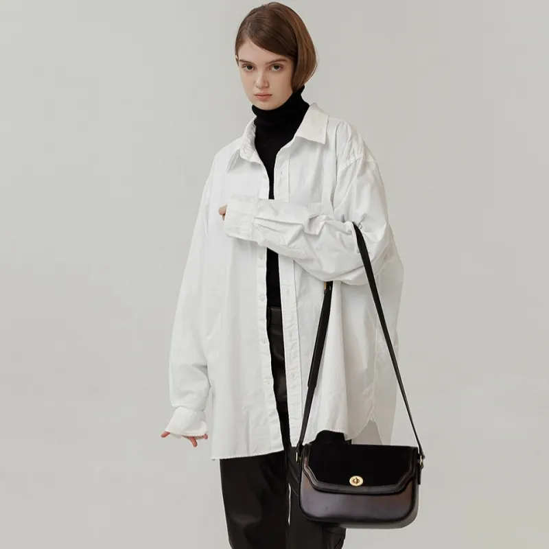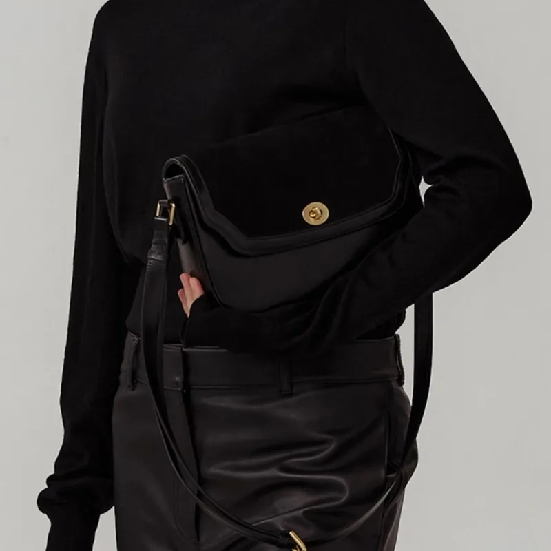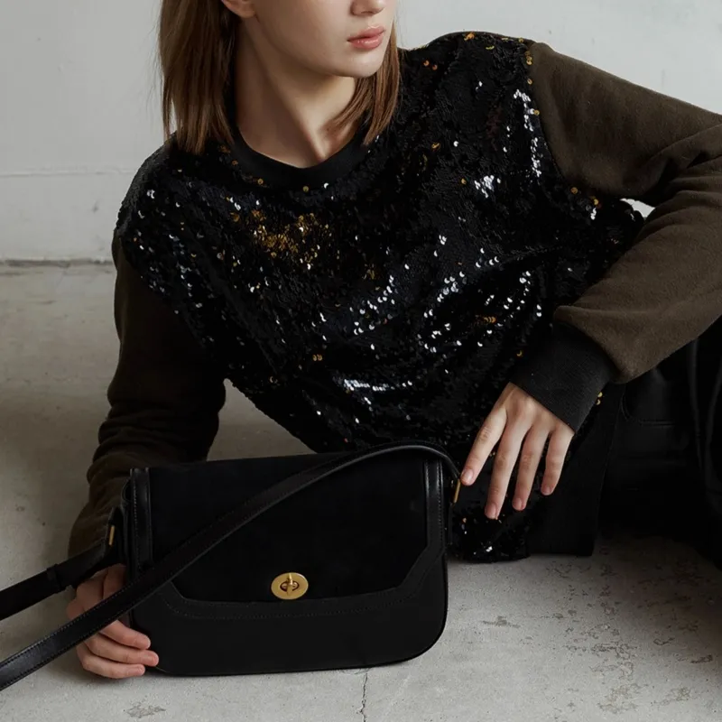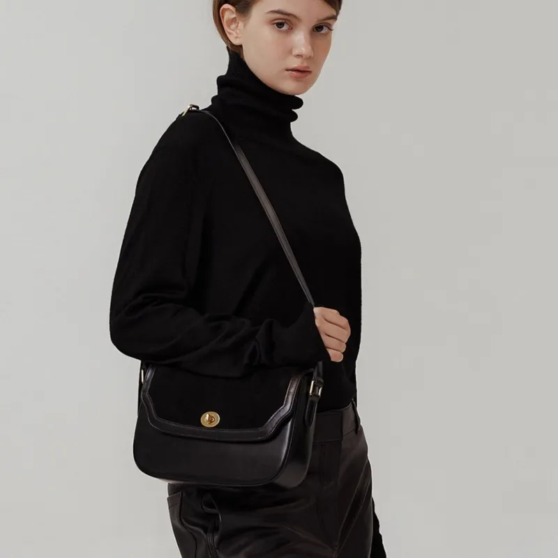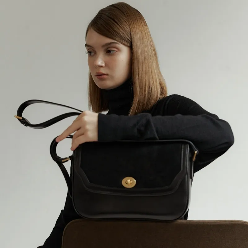 HCVW Коровья кожа Сумка через плечо Женская Черная