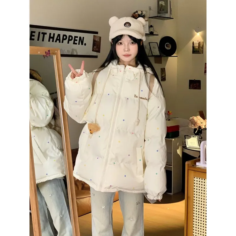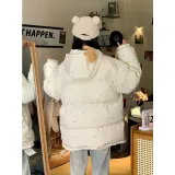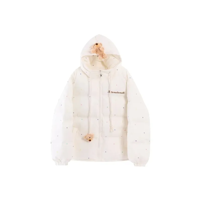 Цвет:Экрю 3D Эффект Медведь Хлопковый Пуховик