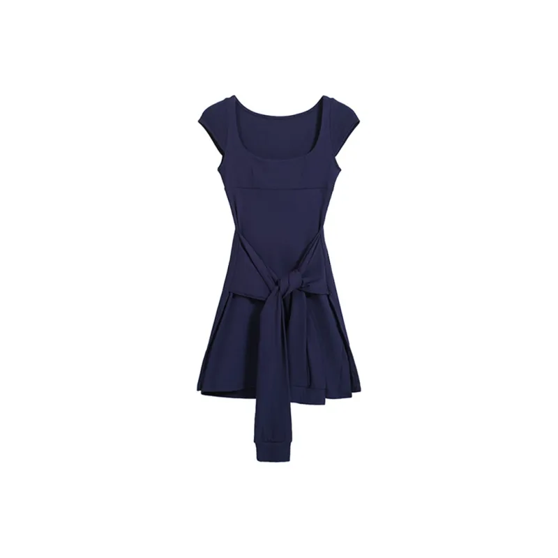 HeartyBite Короткий рукав Платье Женское Темно-синий