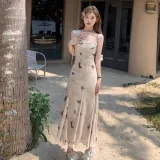 Цвет:Бежево-желтое платье с бабочкой