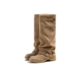 HEIPA Эксклюзивный дизайн похудение винтаж Stacked ботинки горячая девушка колено высокие сапоги женские абрикос