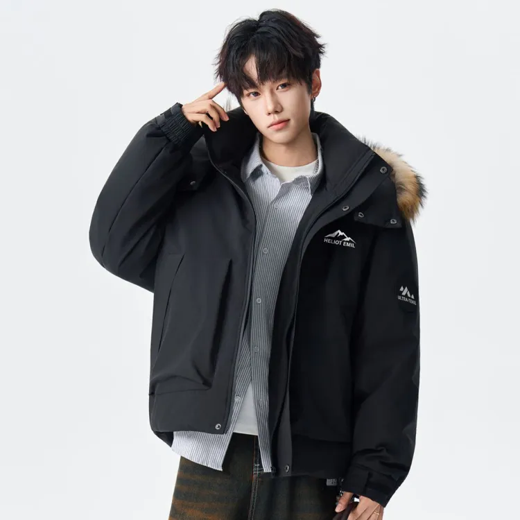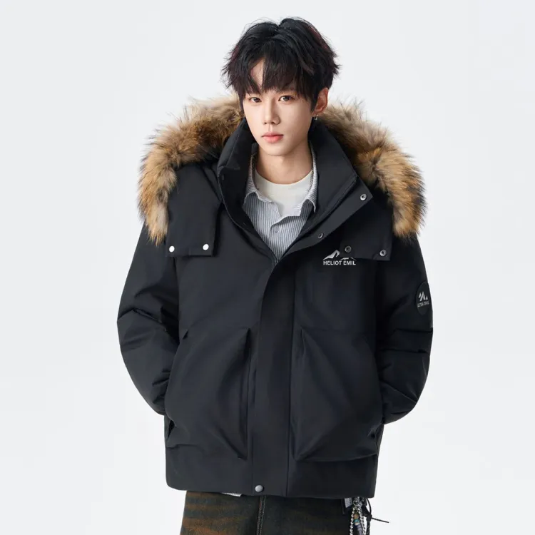 Ткань/Вторичная подкладка: 100% полиэстер Подкладка 1: 100% полиэстер Подкладка 2: 100% полиэстер Ткань подкладки: 100% полиэстер Шапка мех: енотовая собачья кожа Наполнитель: 90% утиный пух Частичный наполнитель: 100% полиэстер