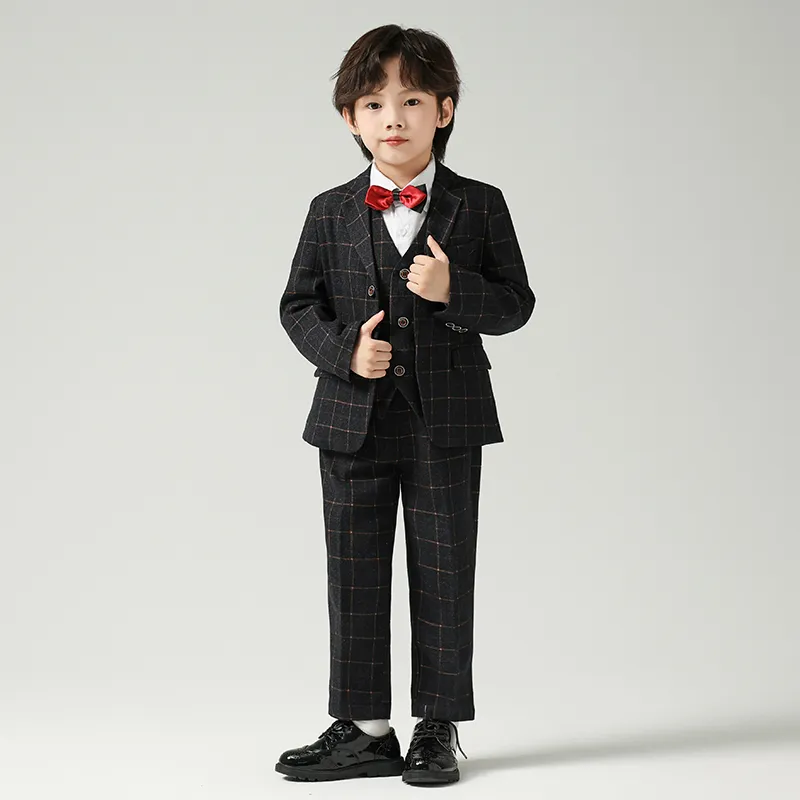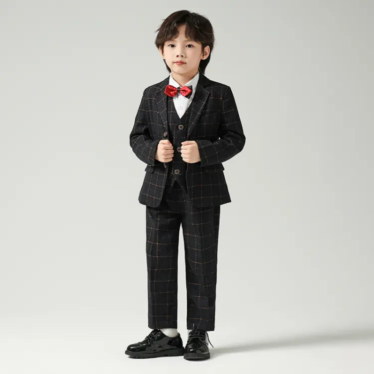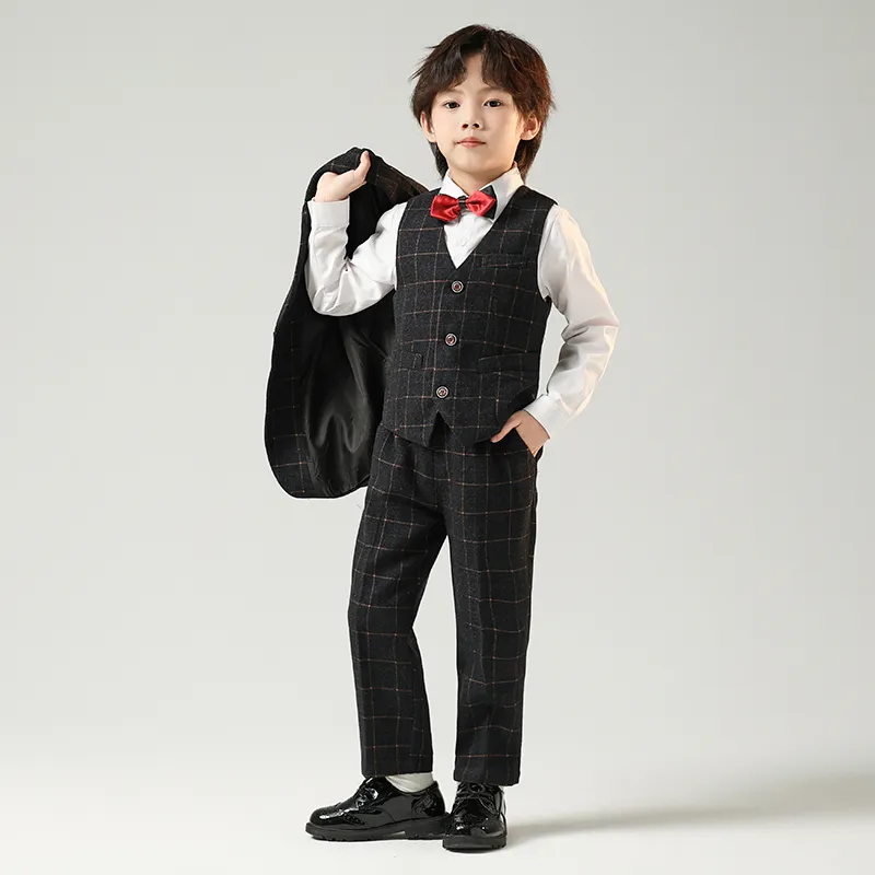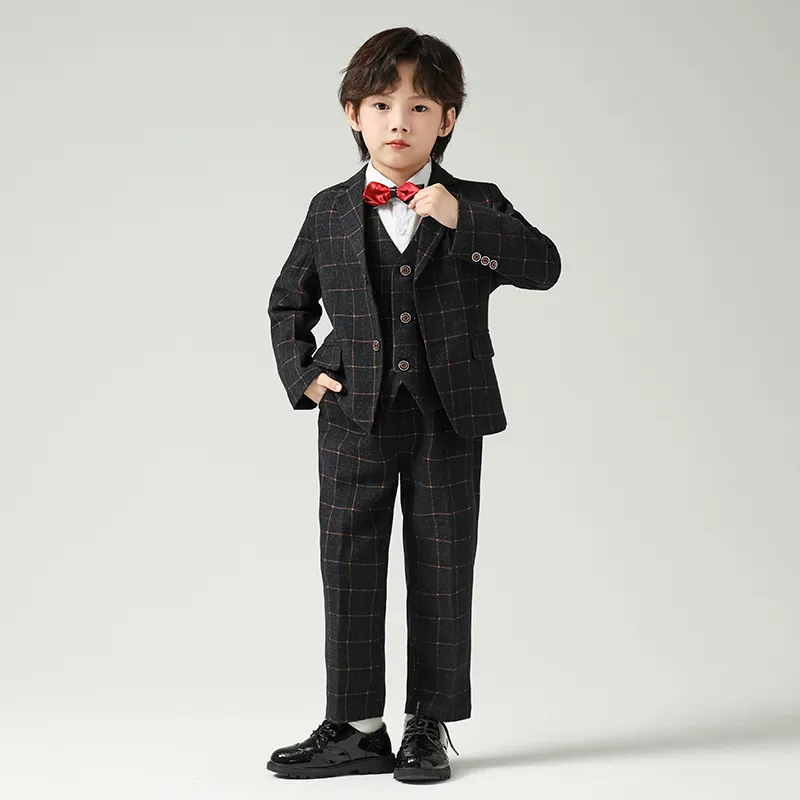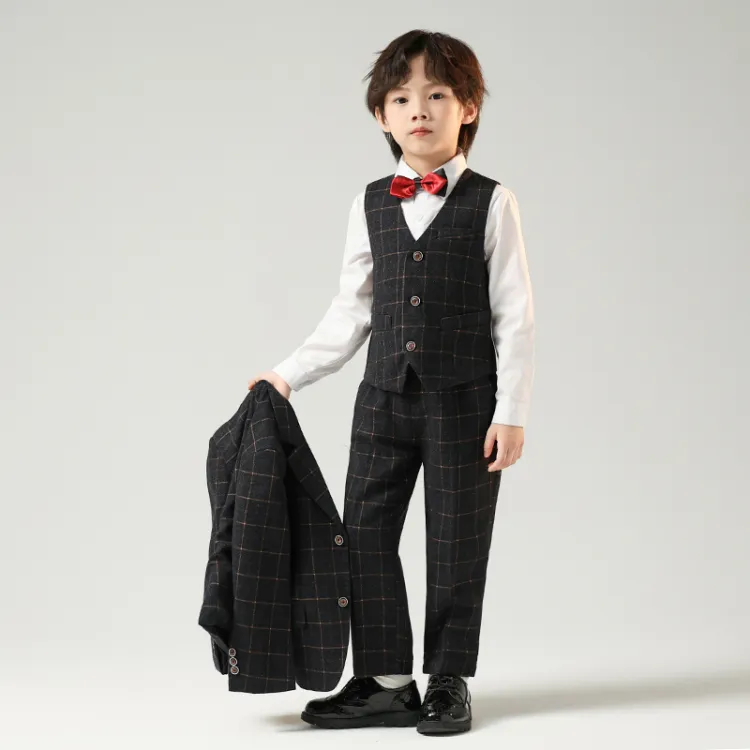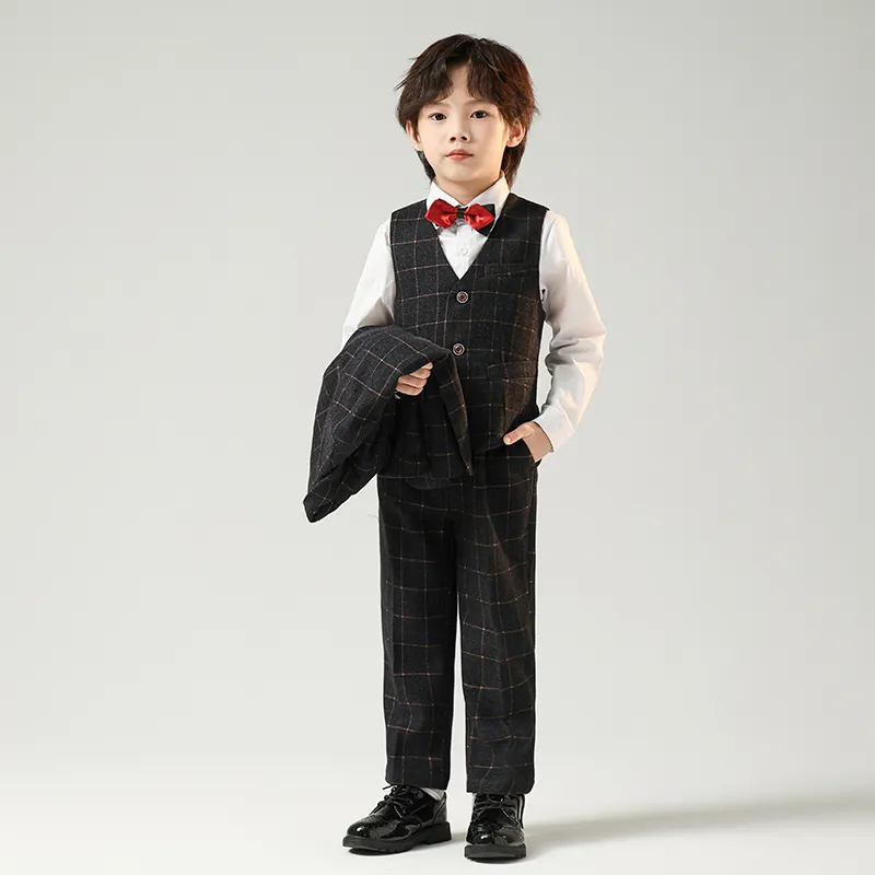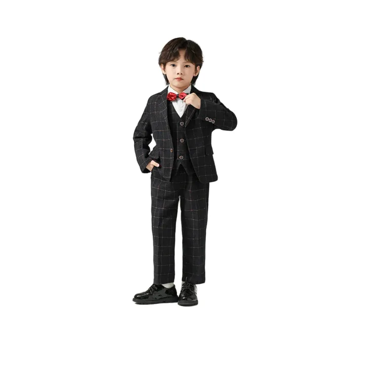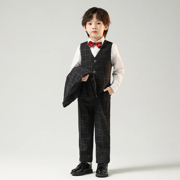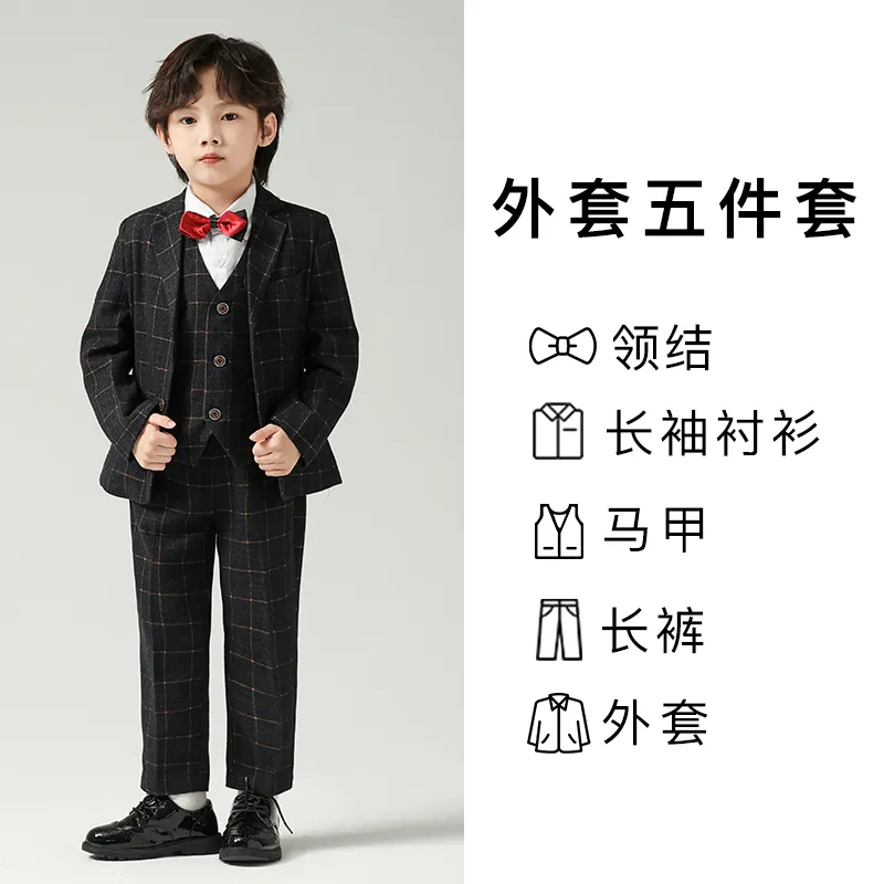 Цвет:Черный и серый комплект одежды (пальто + жилет + рубашка + бабочка + галстук + штаны)