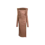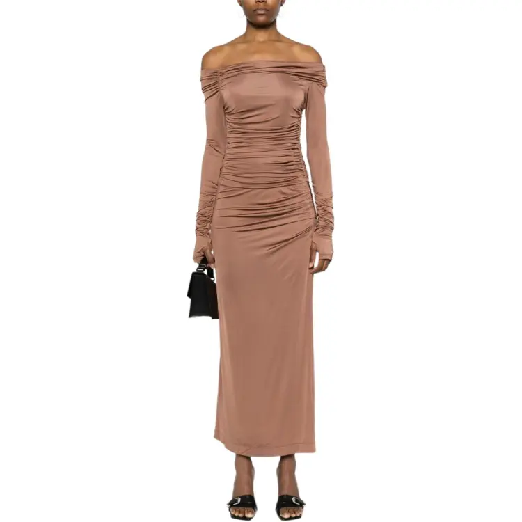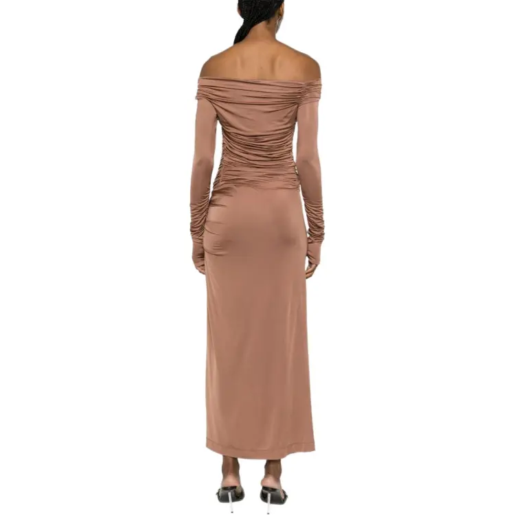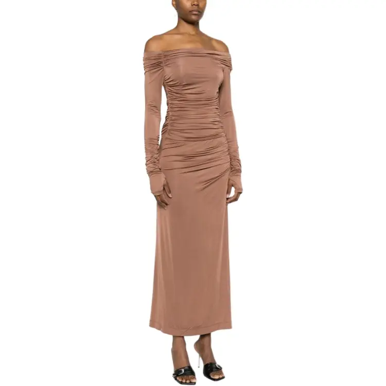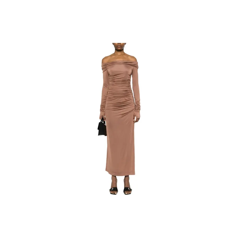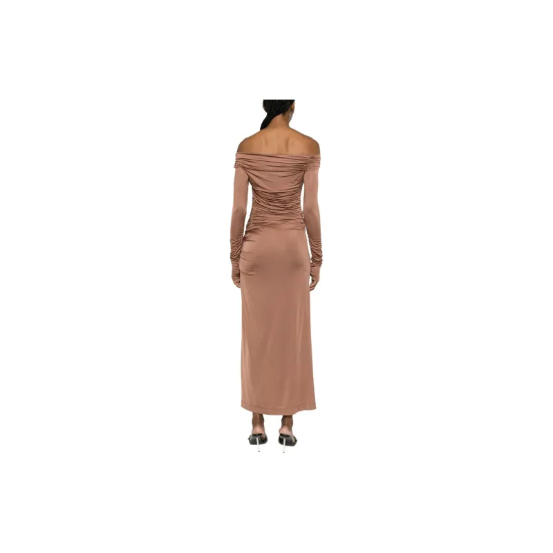 Helmut Lang Длинное платье с длинными рукавами женское ржаво-коричневый