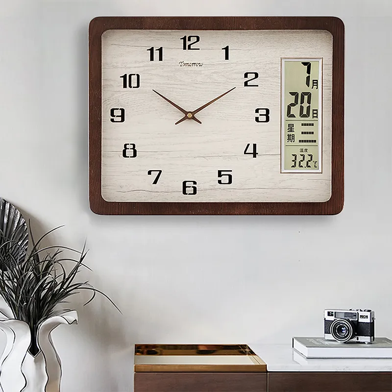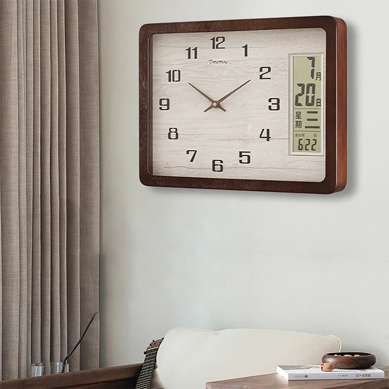 HENSE Кварцевый механизм массивная древесина настенные часы унисекс бежевый циферблат модель HW216