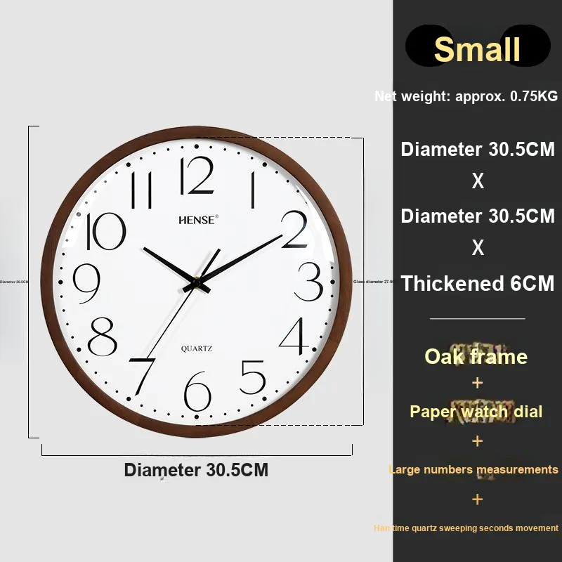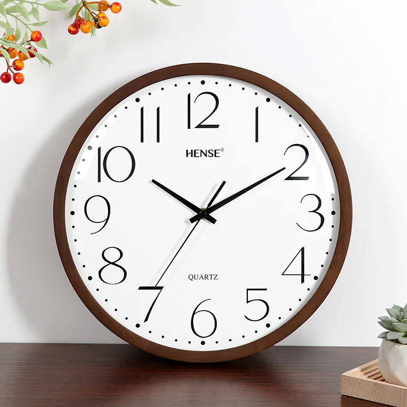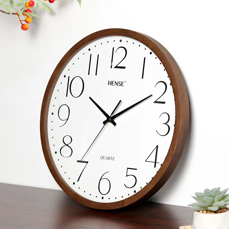 HENSE Кварцевый механизм массивная древесина настенный часы унисекс белый циферблат модель HW89