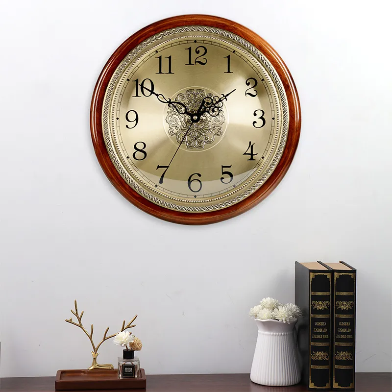 HENSE Кварцевый механизм Деревянная настенная часы Унисекс Золотой циферблат HW38