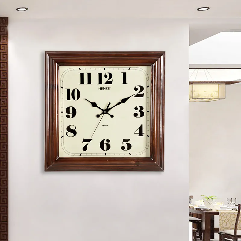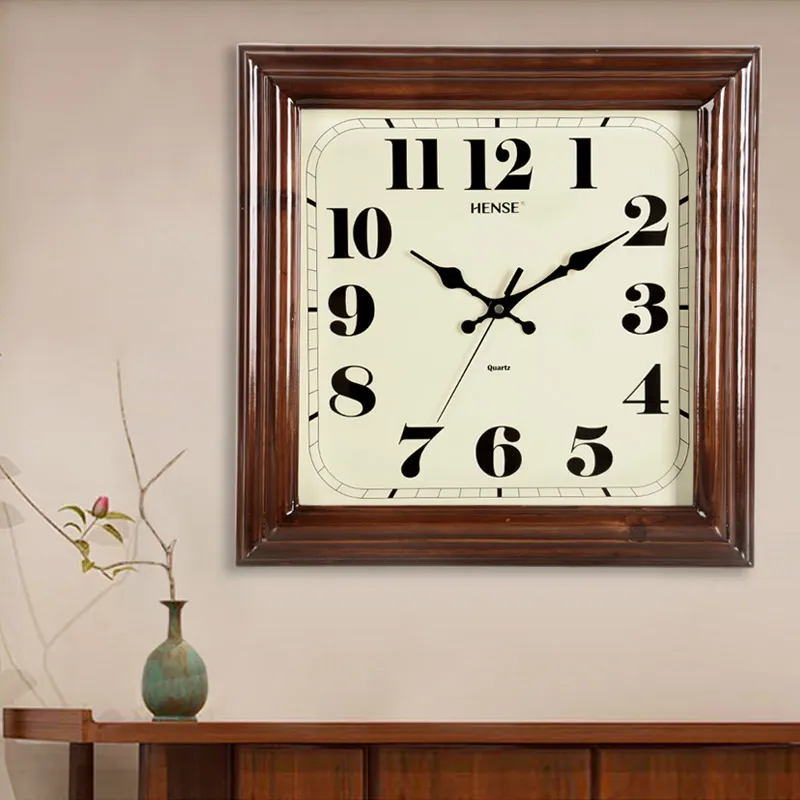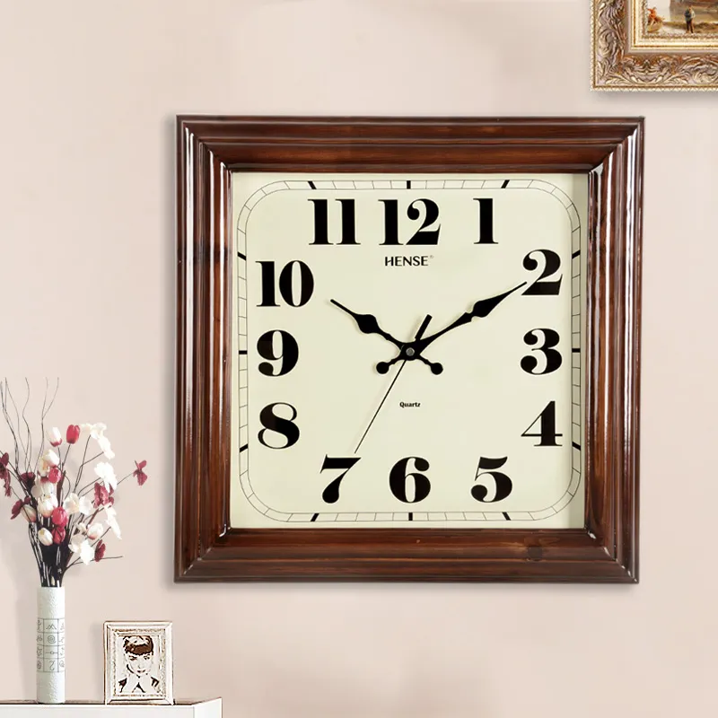 HENSE Массивная Деревянная Стена Часы Гостиная Часы Классический стиль Бежевый Циферблат Часы Унисекс Кварцевый Механизм Часы HW32