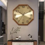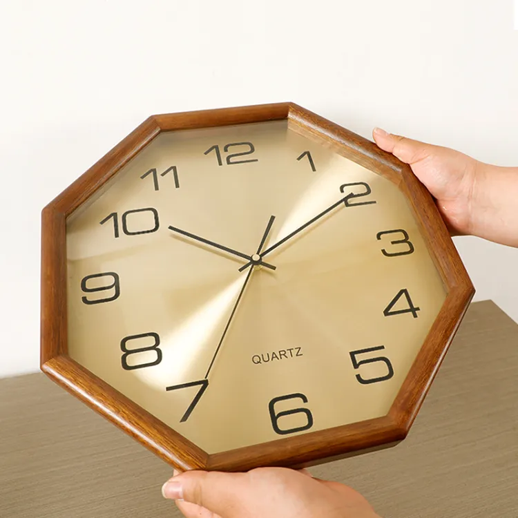 HENSE Механизм с плавным ходом секундной стрелки Wood Стена Часы Унисекс Золотой циферблат HW9022