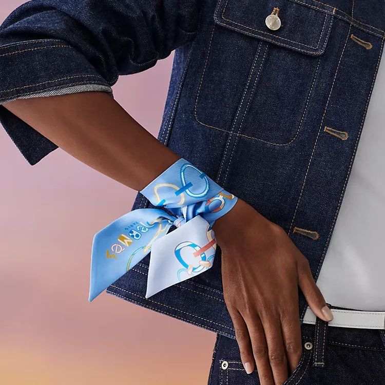 HERMES Шелковые шарфы Унисекс Небесно-голубой