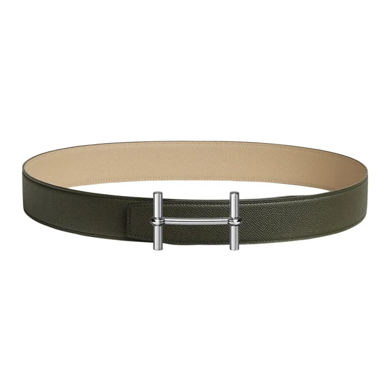 HERMES Ancre Ремни из коровьей кожи Мужской Зеленый Бежевый Ширина 3,8 см