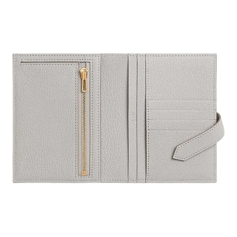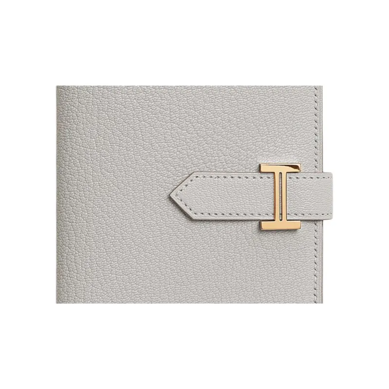 HERMES Bearn Mysore Шевро Кошелек Женские 80 Gris Perle Жемчужно-серый