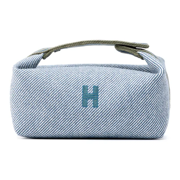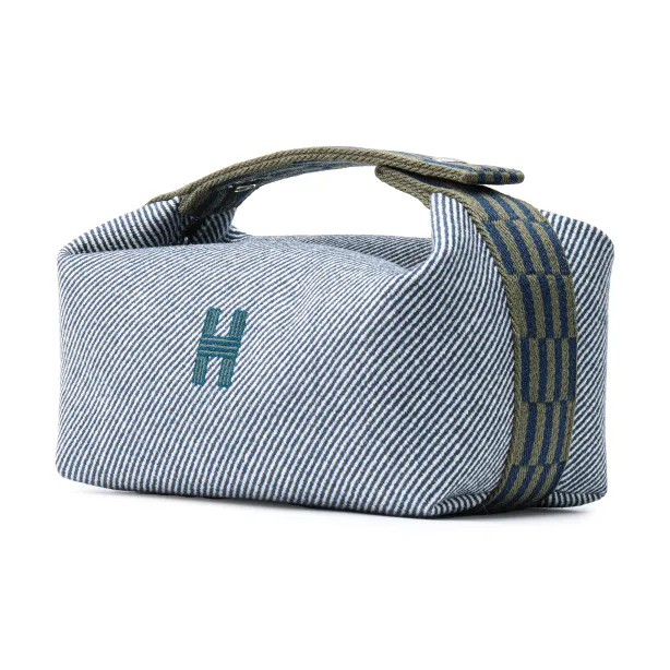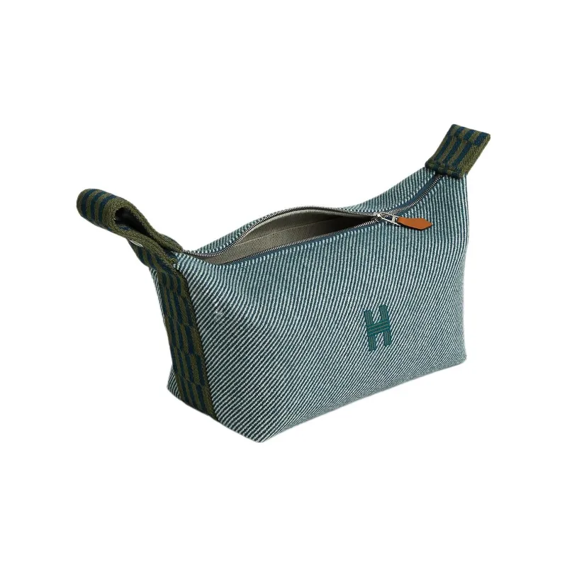 HERMES Невеста a Brac Шерсть Саржа Ткань Сумка Сумка для туалетных принадлежностей Женские Джинсовый синий
