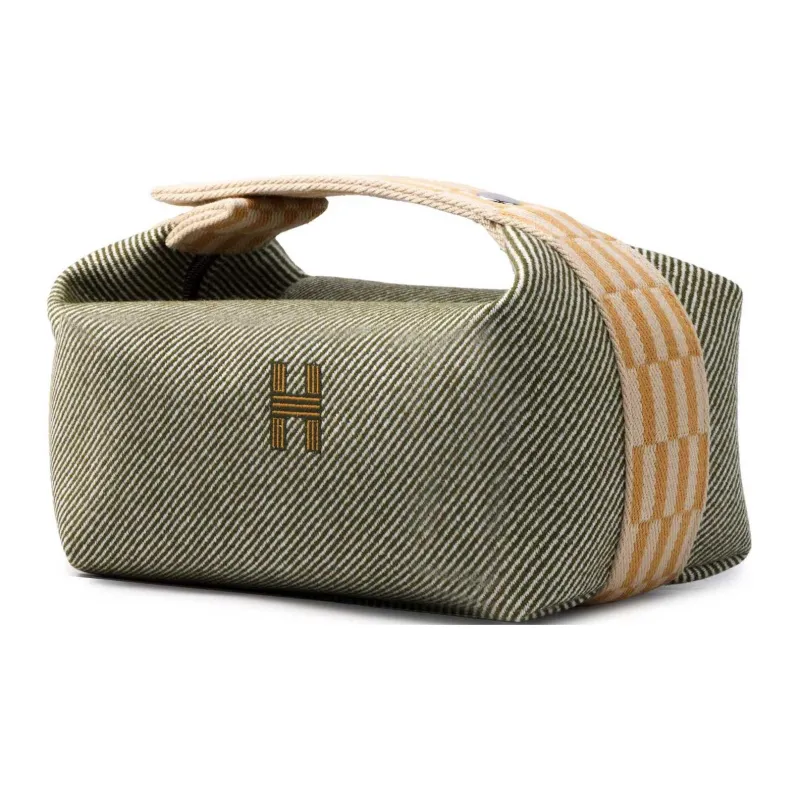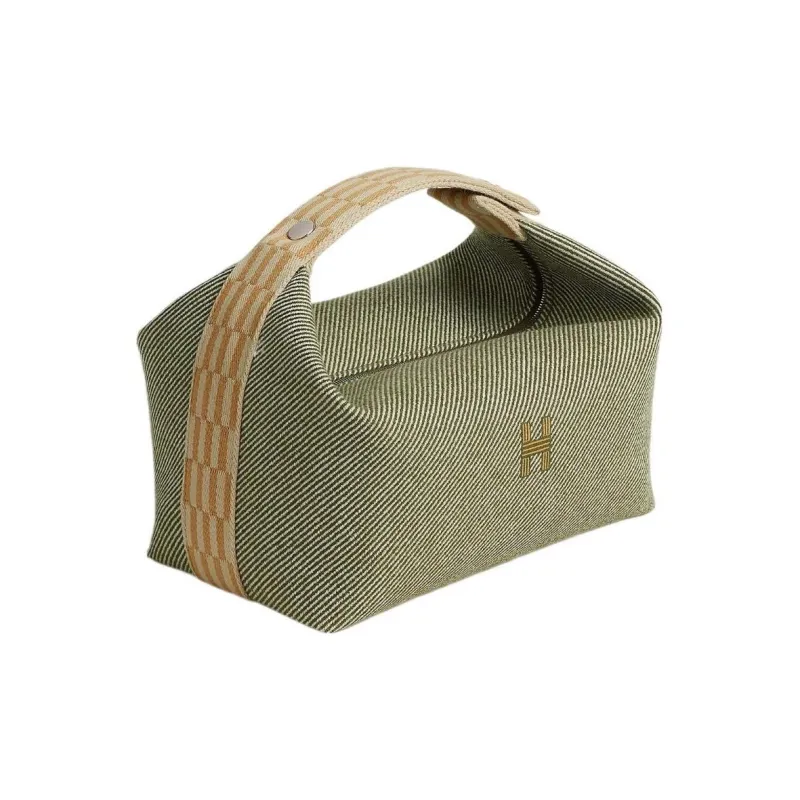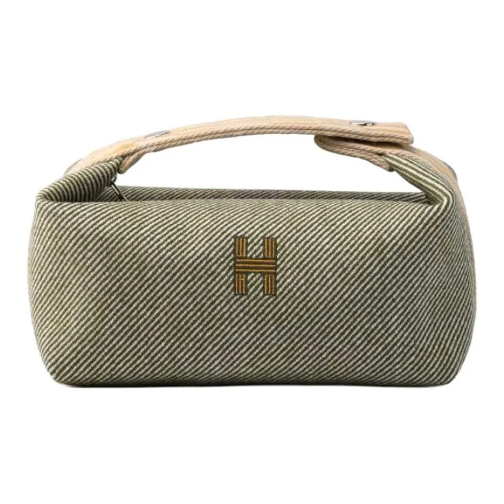 HERMES Невеста a Brac Шерсть Саржа Сумка Туалетная сумка Маленькая Женская Лесной зеленый