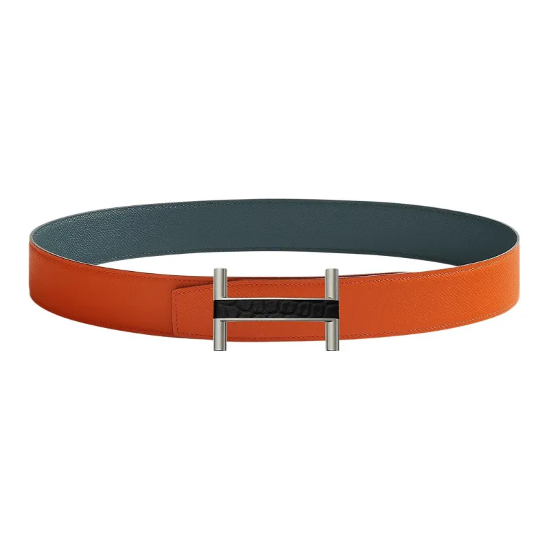 HERMES Bridge Ремни из коровьей кожи Мужской Апельсин Ширина 3,8 см
