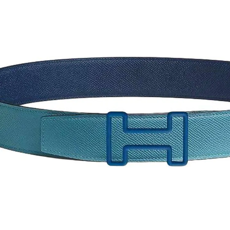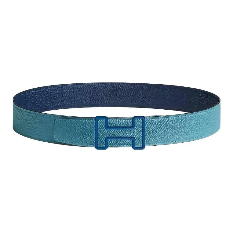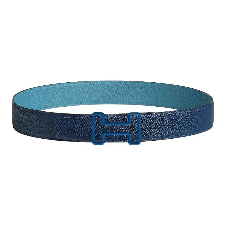HERMES Телячья кожа Кожаные ремни Мужской Светло-синий Морской синий Ширина 3,8 см